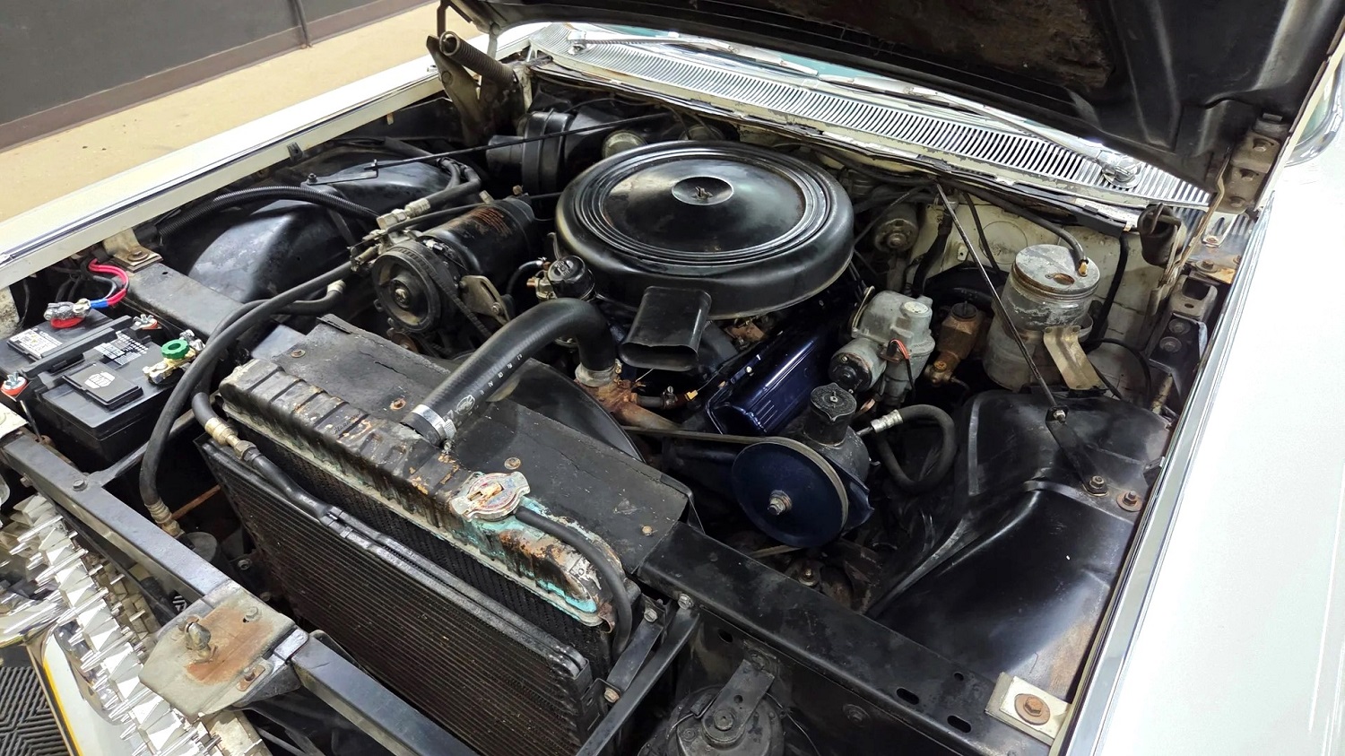 Under the hood is a 390ci OHV V8, which is connected to a Carter four-barrel carburetor and Hydra-Matic four-speed automatic transmission. Power drum brakes with new shoes and hoses act as an anchor for this land yacht.