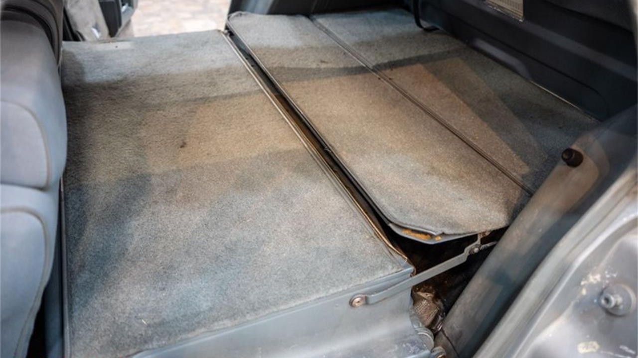 The bulkhead to the trunk was removed so that the seller’s grandfather could sleep in the rear area on trips. The interior was most recently reupholstered with black leather in the 1980s.