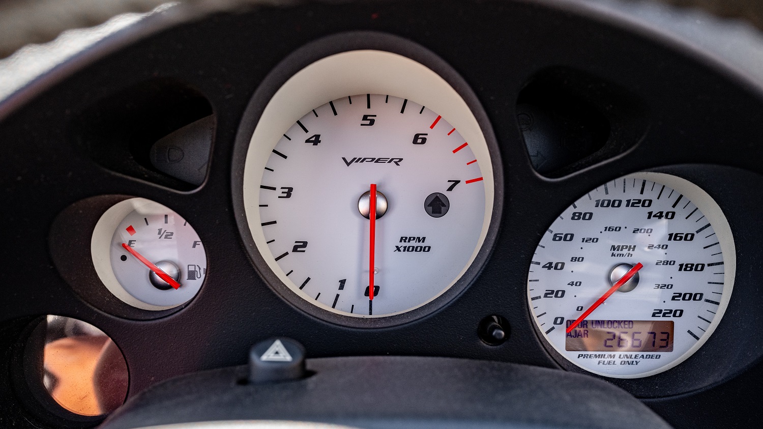 The gauges keep things simple – there’s a 120-speedometer and a fuel gauge. The odometer shows 45,574 miles.