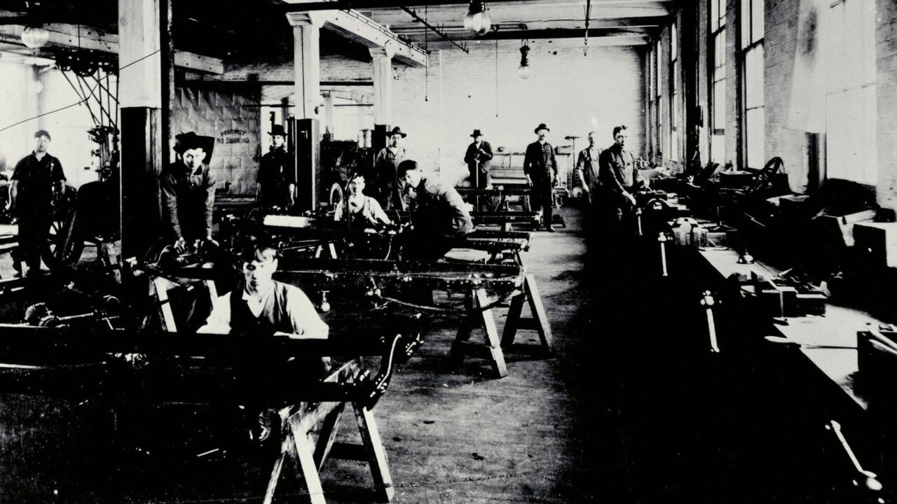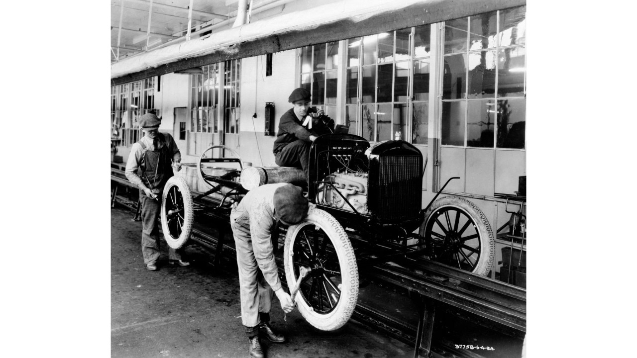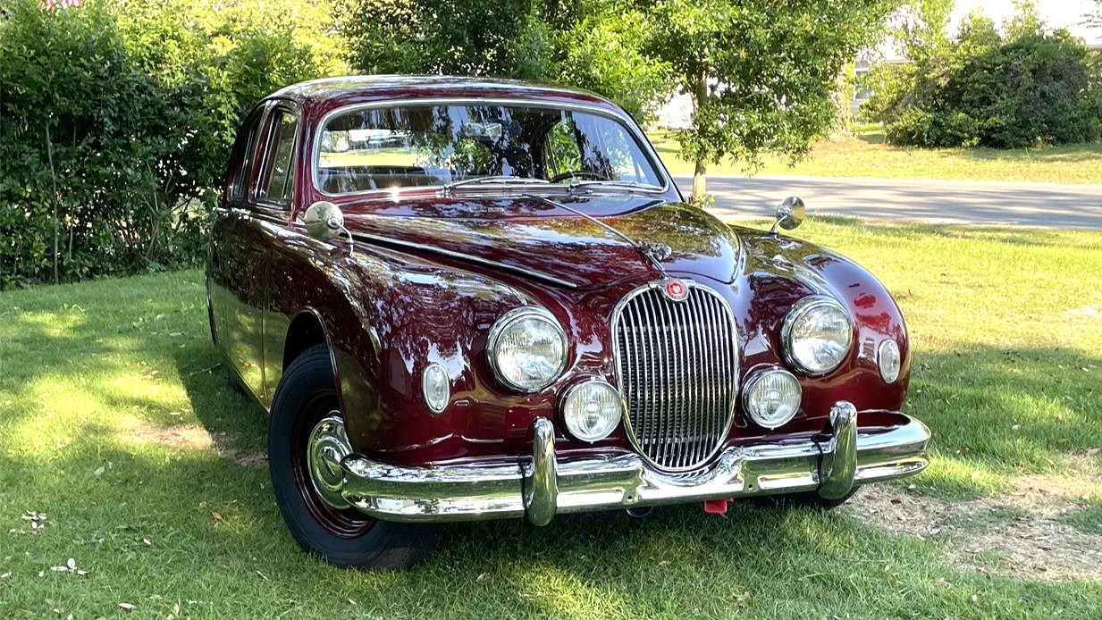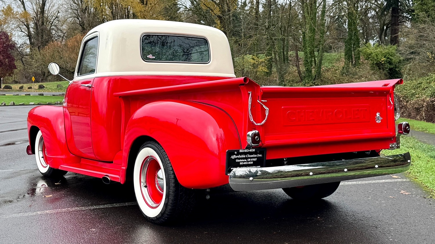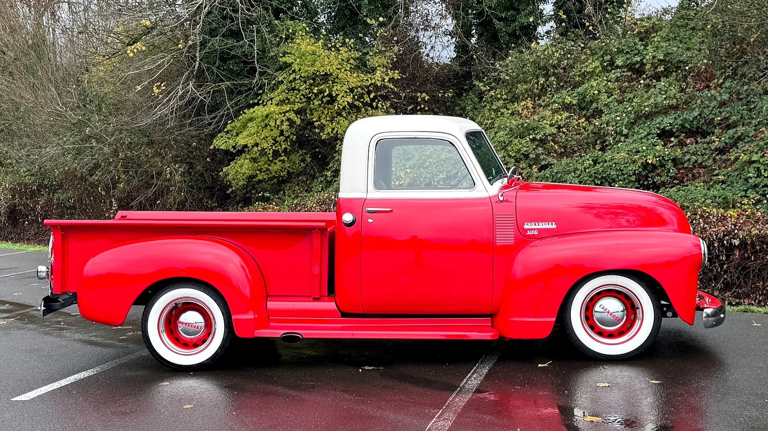 Maroon-finished 18” wire wheels wear polished hubcaps and are wrapped in 7.00” Coker Excelsior tires. The drop front axle is supported by ladder bars and adjustable coilovers, while the rear axle is rigidly mounted to the frame. Braking is handled by hydraulic rear drums.