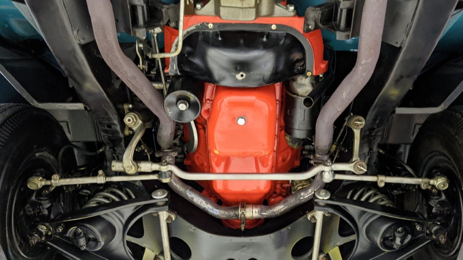 In 2000, the original four-barrel 350 was replaced with a GM Goodwrench 350ci V8 crate engine, which is equipped with a Holley 670cfm four-barrel carburetor and heavy-duty four-row radiator. The engine sends power to the 3.07:1 rear end through a rebuilt TH350 three-speed automatic.