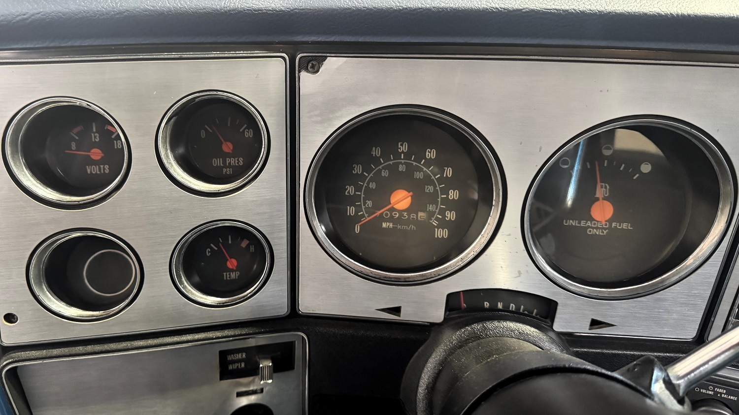 Instrumentation consists of a 100-mph speedometer and gauges for the voltage, oil pressure, temperature, and fuel level. The odometer shows 70,938 miles, but this truck is mileage-exempt, according to its title.