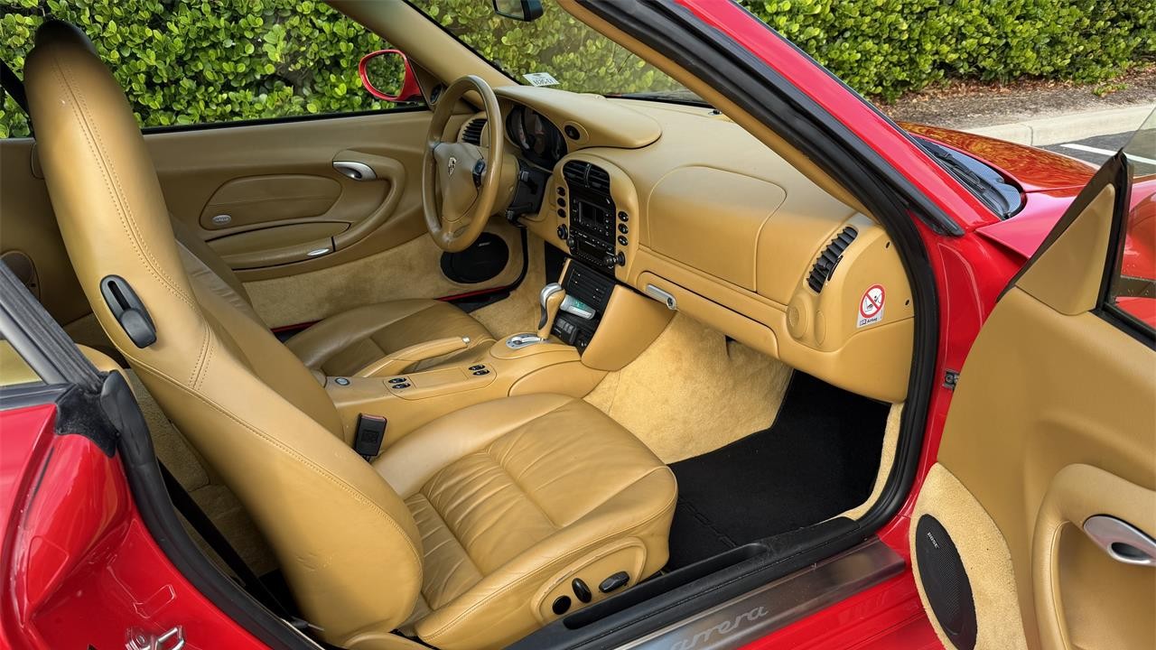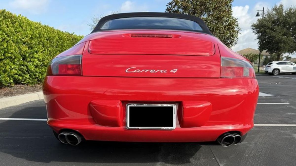 “This is a beautiful Guards Red car with Savanna Beige interior and a black convertible top,” the listing says. The “996” generation of the Porsche 911 was produced from 1999 through 2005. It marked a significant engineering development compared to prior generations – most notably because it had a water-cooled (versus air-cooled) engine. At the rear of this car is a 3.6-liter flat-six mated to a five-speed automatic transmission (a six-speed manual was also available).