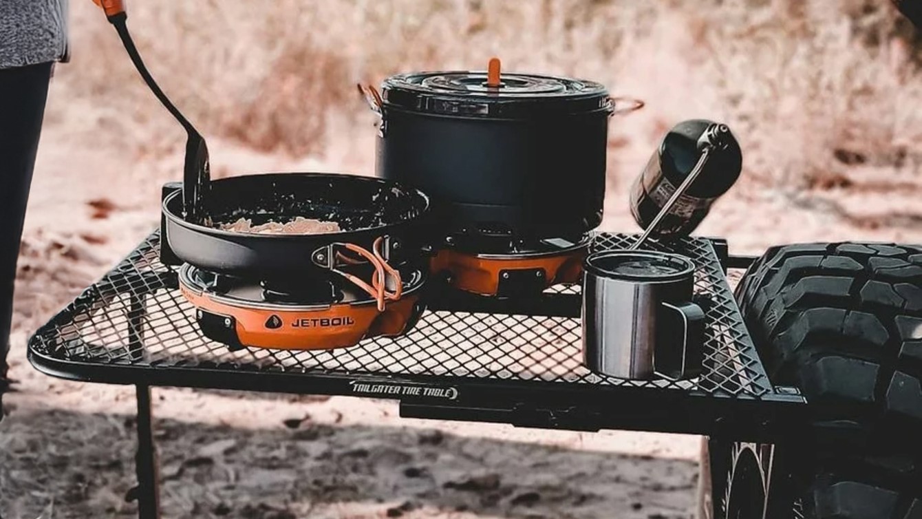 Some of the more interesting items in the gift guide are a $218.50 Mopaw rear seat pet carrier (get it?) that’s compatible with the LATCH (Lower Anchors and Tethers for CHildren) system in the back seats of many vehicles, and a $185 powder-coated camping table that can be deployed from a tire. According to Stellantis, “It easily holds up to 50 pounds and features a retractable leg for extra support.”