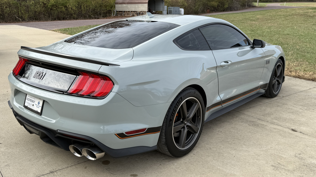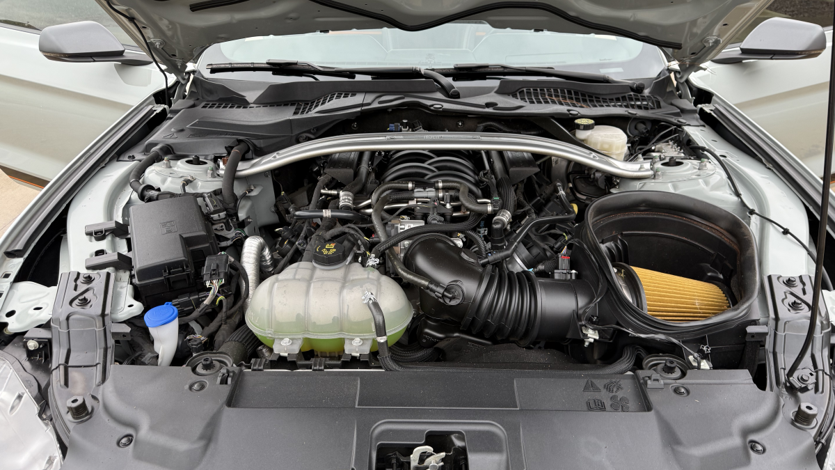 The three-spoke steering wheel is mounted atop a tilt-adjustable column with a Classic Instruments Rocket Tach tachometer affixed to it. The engine-turned aluminum panel houses a Classic Instruments direct-fit gauge set that includes a 140-mph speedometer. The 645 miles on the odometer represent the distance driven since completion of the build.