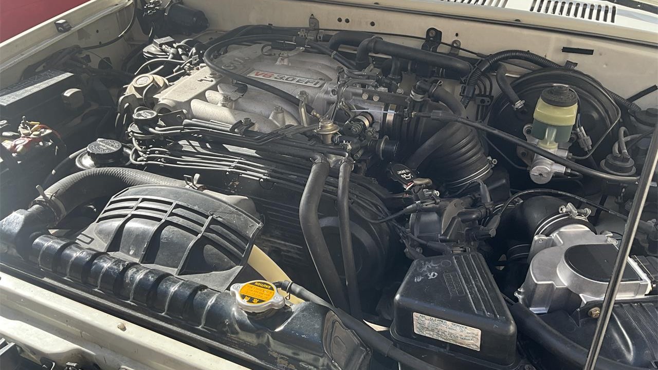 Power comes from a 3.0-liter SOHC V-6 mated to a five-speed manual transmission and a dual-range transfer case. The 3.0 V-6 – known also as the 3VZ-E – was known for its legendary reliability. Toyota rated it at 150 horsepower and 180 lb-ft of torque. This truck’s odometer shows 128,700 miles, which is relatively low for a vehicle that’s 34 years old.