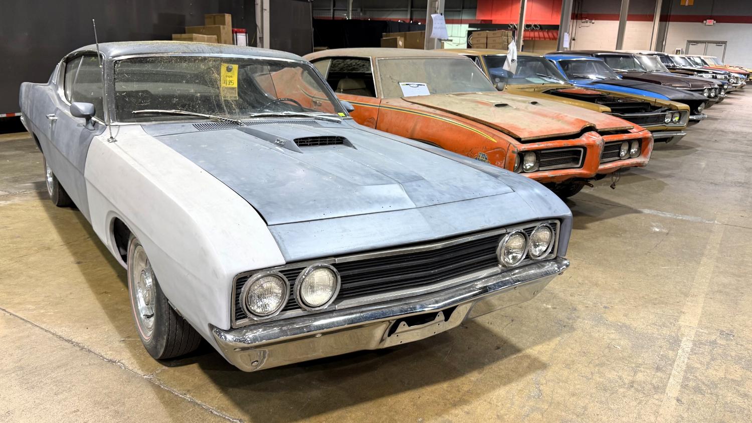 A 1969 Ford Torino Talladega and 1969 Pontiac GTO Judge lead a parade of barn finds.