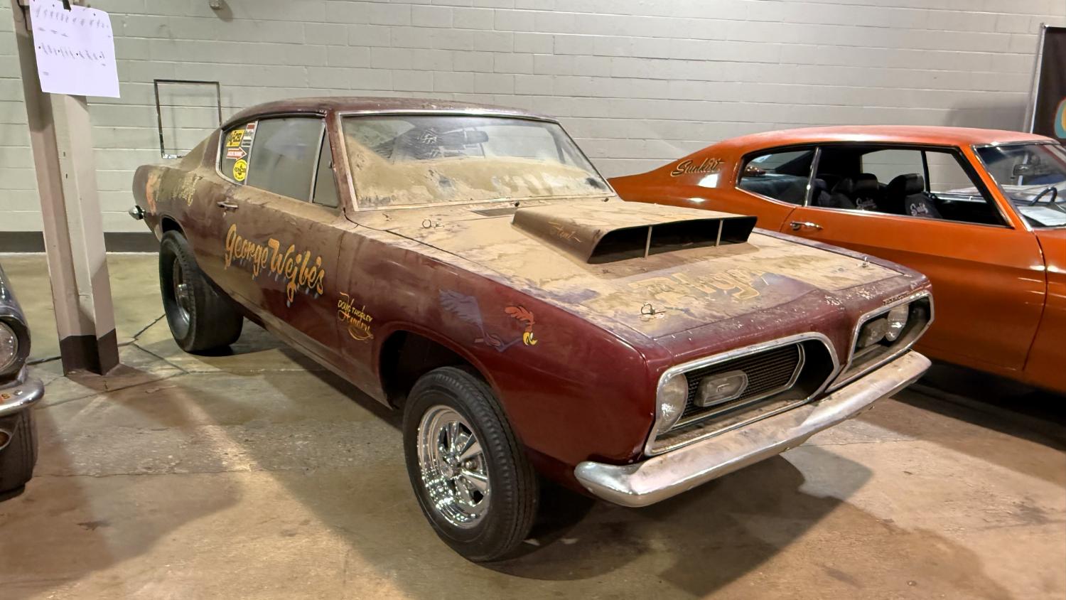 This is a 1969 Plymouth GTX. Does the barn or the set of wheels make the car? A 1970 Plymouth Road Runner convertible with the 440 Six Barrel engine is very, very rare. The original color can be seen on the wheels.