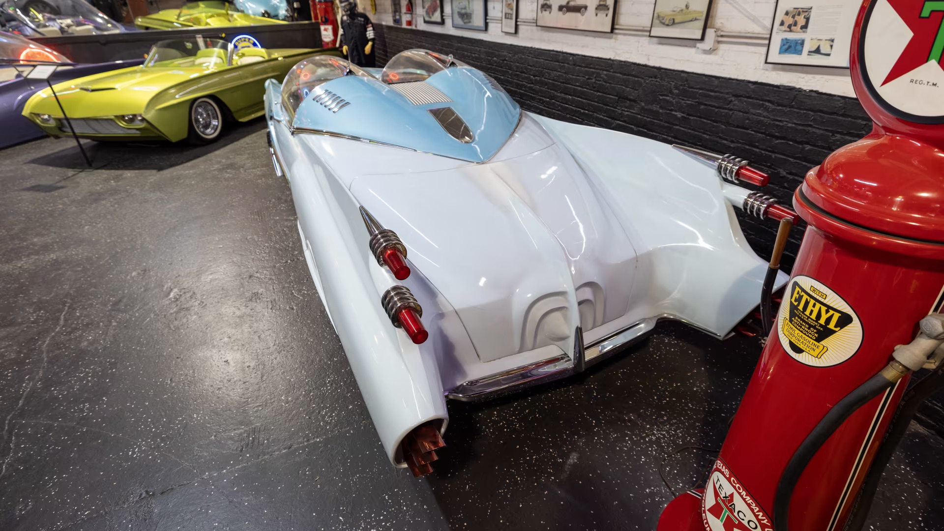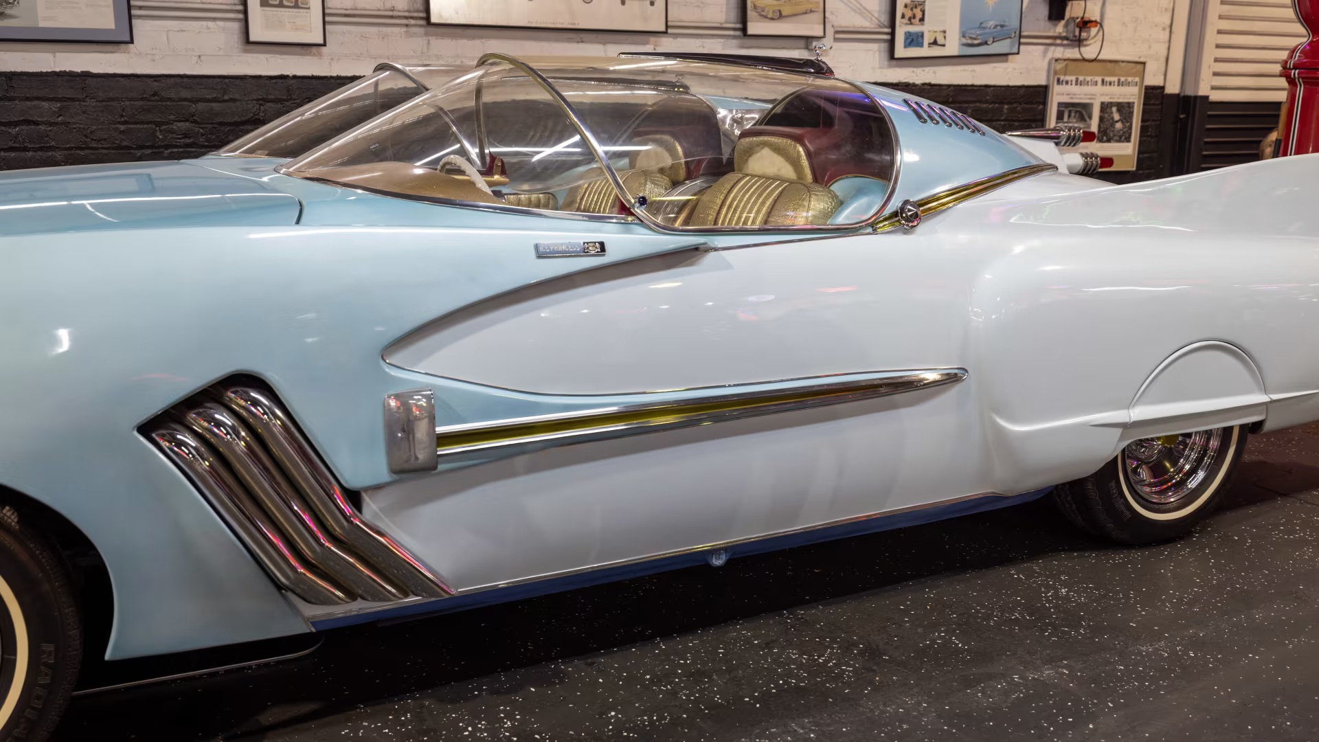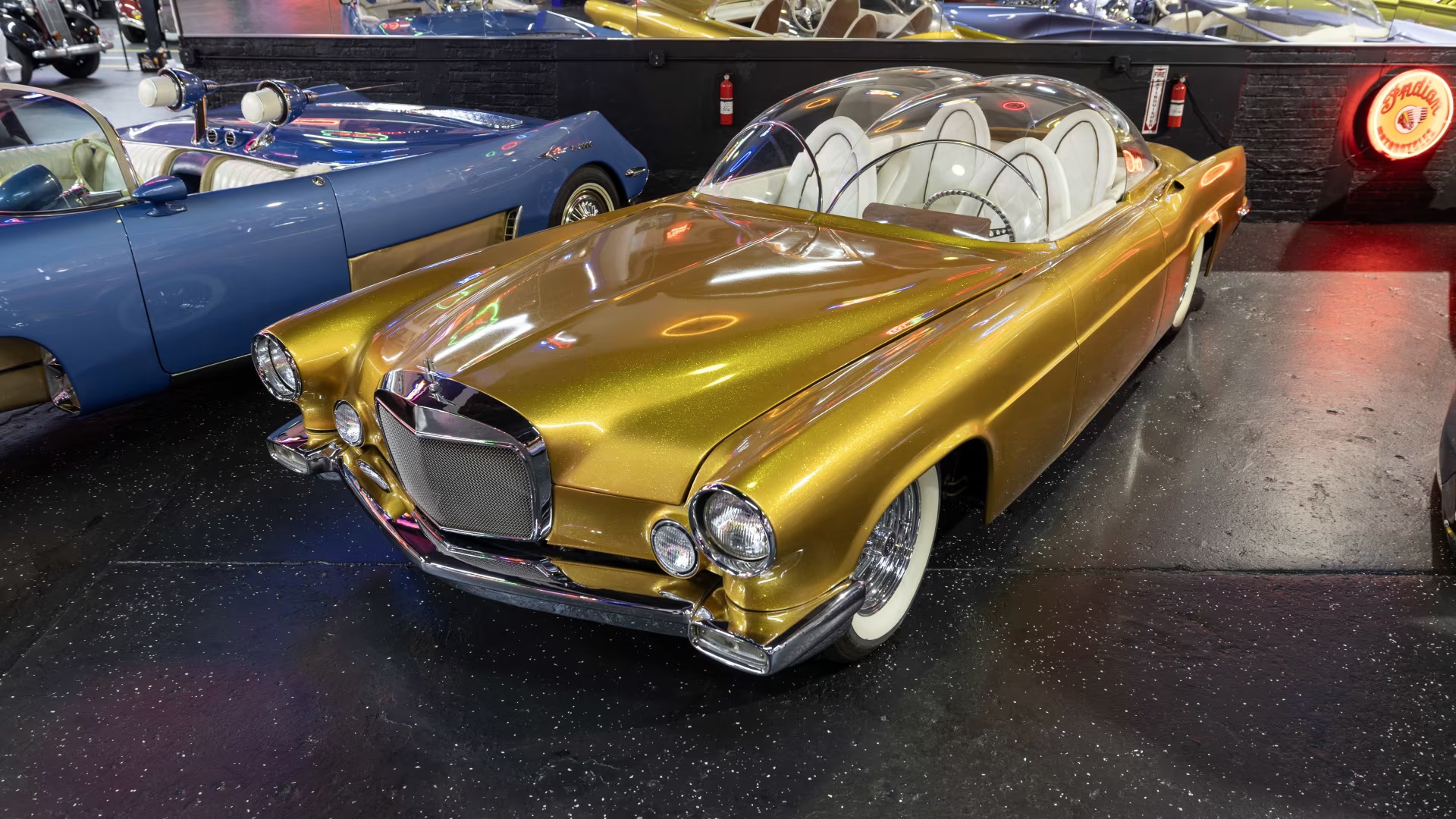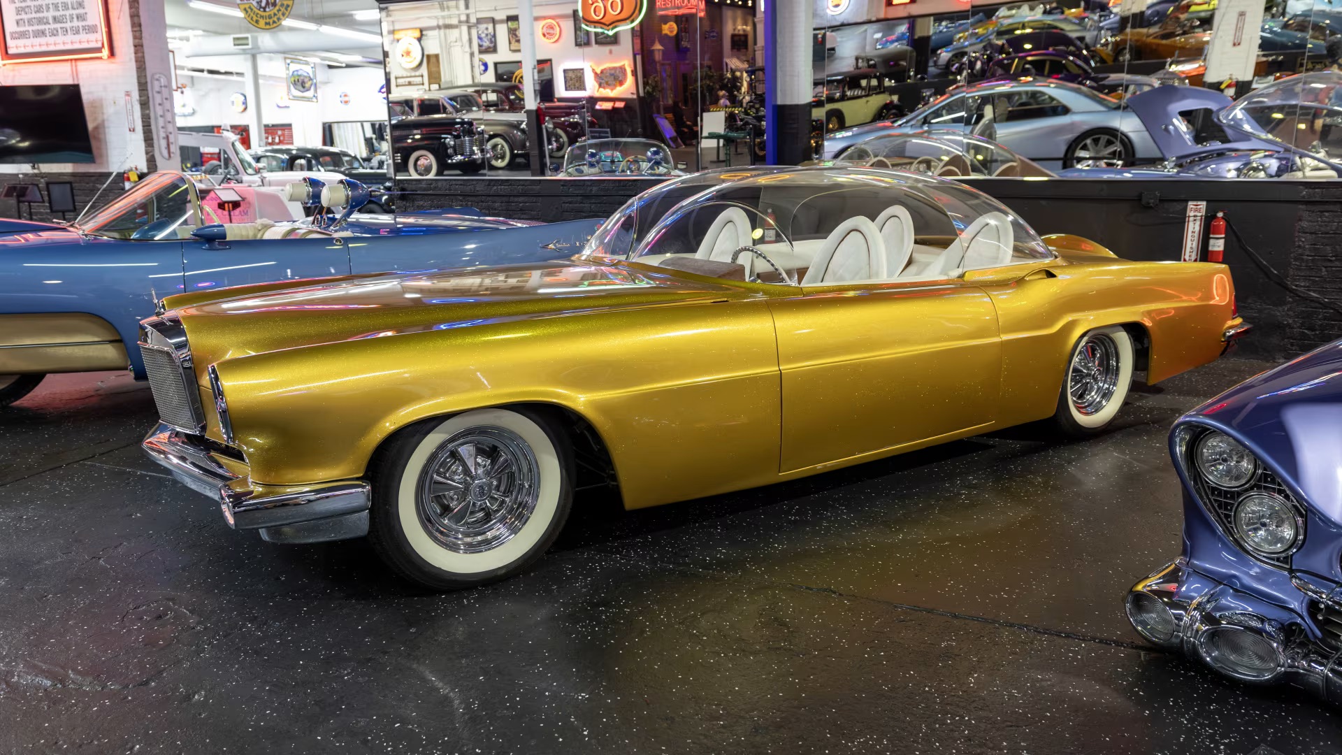 The 1950 Studebaker Ice Princess XF58 will be offered at Mecum Auctions’ Larry’s Legacy Auction on Saturday, September 20th, 2025, at the Klairmont Kollections Automotive Museum in Chicago, Illinois. The car will be offered without reserve and is being sold from the Larry Klairmont Museum Collection along with other unique custom cars such as the award-winning 1955 Ford Beatnik Bubbletop Custom, the Golden Sahara II, a legendary custom car with glowing tires, and a George Barris protege build, the 1956 Continental Mark II Custom Bubble Top.