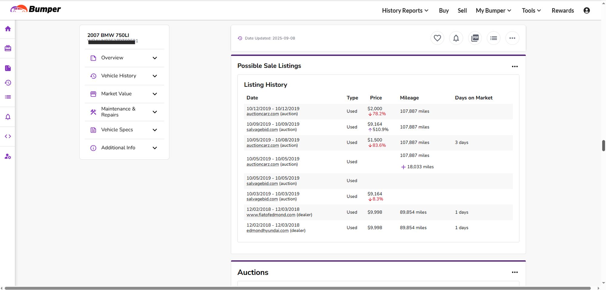 Buying a title-washed vehicle usually ends poorly for the buyer. The phrase “Caveat Emptor” or “Buyer Beware” applies to any and every vehicle you are considering purchasing. Even if you know the seller, they could have been duped along the way. A vehicle history report from Bumper.com is the best way to help ensure that you know the dirty details of any vehicle you are buying or selling. Providing a clean VHR to any prospective buyer shows that you are not out to defraud anyone. Got a vehicle with low miles on the odometer? A VHR can help prove they are original miles and not a rollback or rollover.