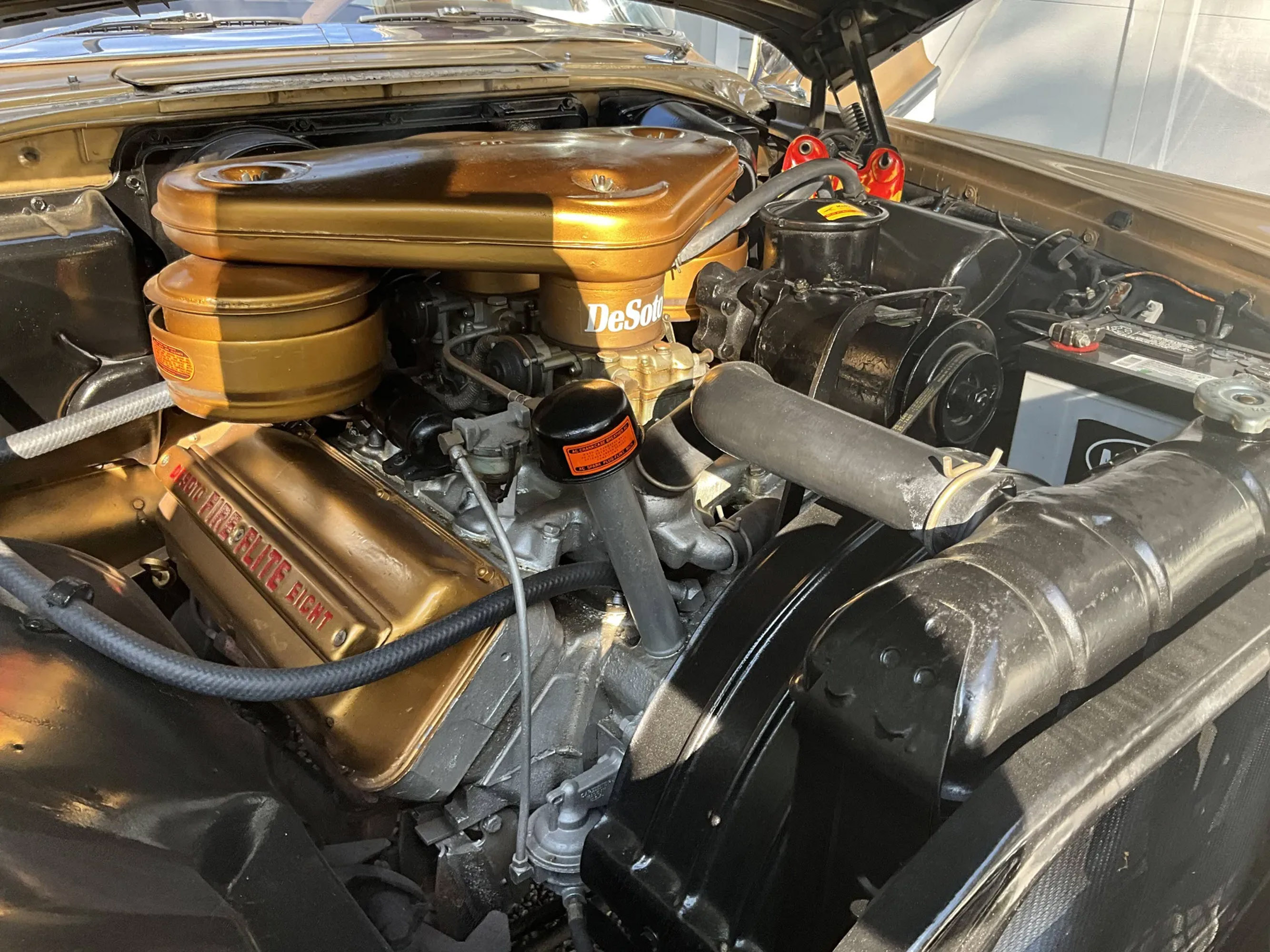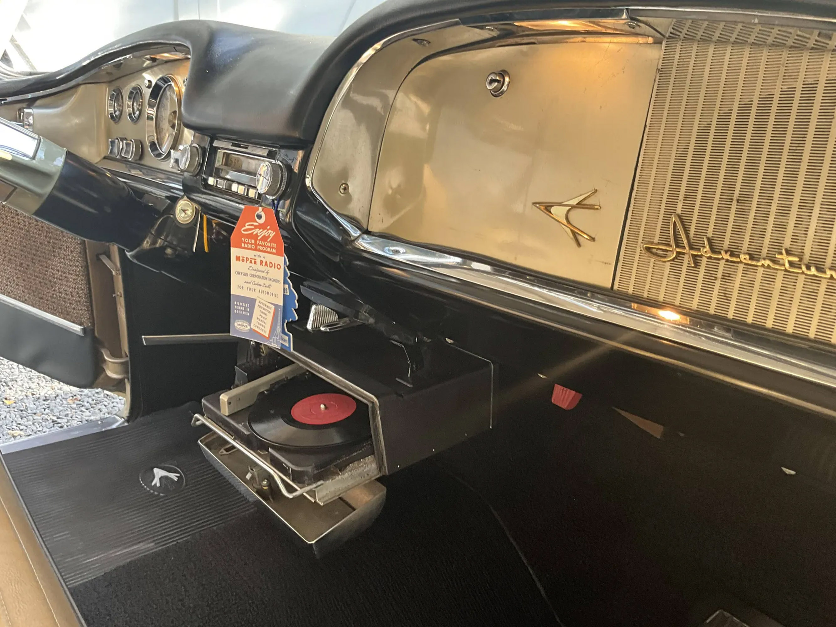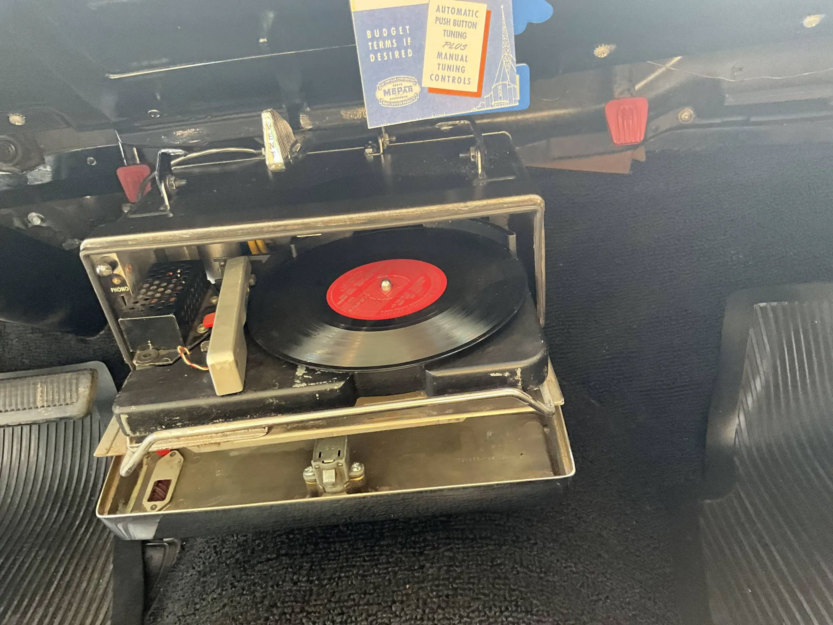 Looking resplendent in Adventurer Gold and Surf White, this is the 481st example built and features a rare Benrus 15-jewel self-winding clock mounted in the center of the steering wheel. The front bumper guards house fog lights that are easy to miss at first glance, and outside of the addition of aftermarket seat belts for the front passengers, the interior has remained original, down to the Highway Hi-Fi 45-rpm record player.