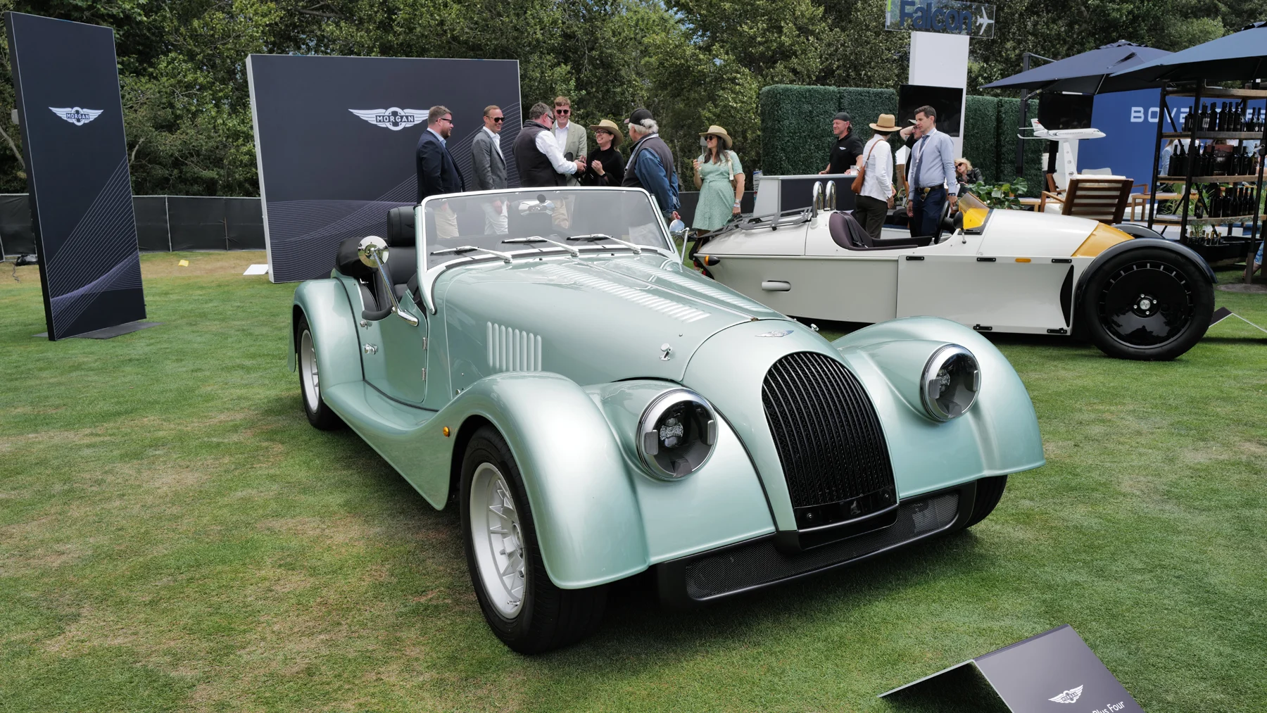 While walking around the show area near a great Shelby Mustang display, I saw a small light green car peeking between the many GT350s. I walked over to and saw discovered the Morgan Motor Company display—and the car I had seen was the new 2025 U.S.-legal Plus Four.