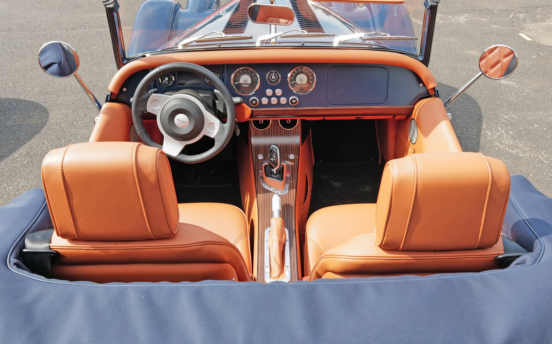 The most impressive thing about the new Plus Four is just how refined it is. That might sound like a crazy word to use to describe something basically based on a classic British sports car of the 1930s that doesn’t even have proper door window glass, but the Plus Four is one of the finest-built roadsters I have ever driven. The way the doors close, the fit and finish of everything—from the body panels to the interior bits —seems more on the level of Aston Martin or Rolls-Royce then the Morgans of old. Yes, old Morgans were properly built, but the new Plus Four is what you get when you spend a lot of money taking a classic design and building it as well as possible, using the very best traditional materials combined with some newer materials that don’t take away the car’s “Morgan-ness” but just make it as good a Morgan as possible.