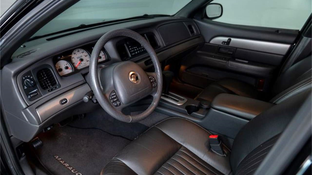 Those models years were also the entire lifespan of Mercury’s resurrection of the Marauder nameplate for a sinister, high-performance version of the Grand Marquis. In addition to giving the Marauder a monochromatic appearance, 18-inch chrome rollers, and dual exhaust outlets, Mercury dropped a 32-valve version of the 4.6-liter V8 in between the front shock towers. Thanks to that better breathing and Roush Performance engineering, the engine pumped out 302 horsepower and 318 lb-ft of torque, which was processed by a four-speed automatic and a 3.55 limited-slip rear end. To make sure the suspension could handle the significant increase in output, Mercury upgraded the suspension for “performance handling” with Tokico front shocks, 28-millimeter front and 21-millimeter rear stabilizer bars, and load-leveling rear air springs.