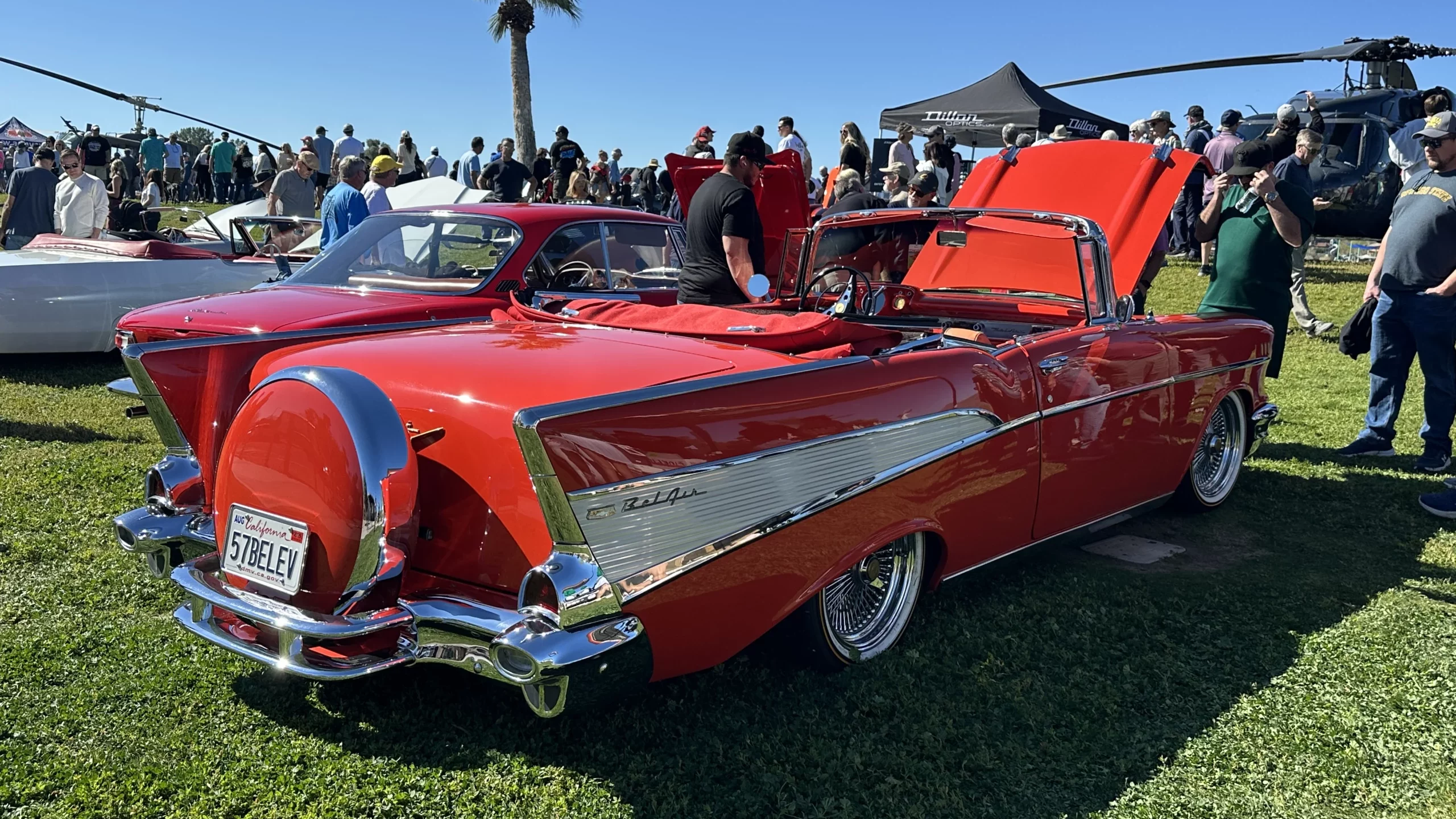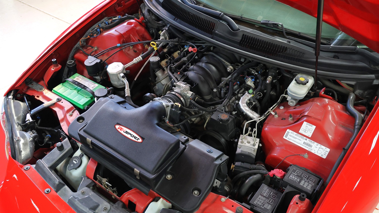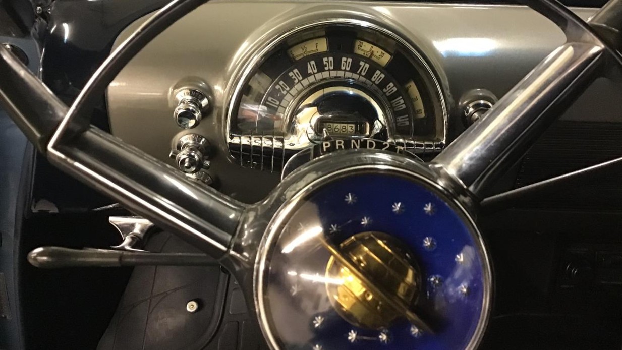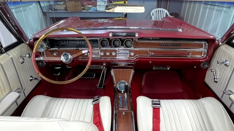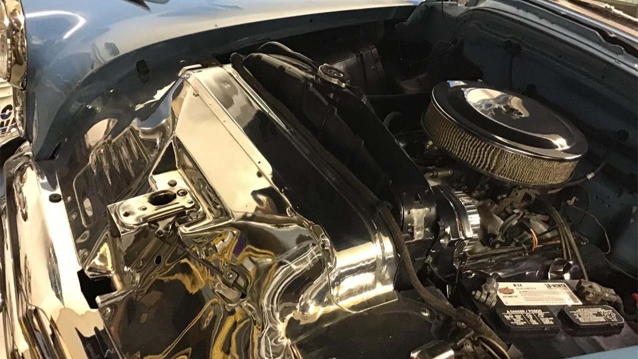 The exterior of this Corvette looks to be in fine condition, with the Riverside Red paint looking excellent. In addition, the car has a factory-correct convertible top, the chrome has been replated, and the car rides on 15-inch turbine-style knock-off wheels clad with 215/75 whitewall radial tires.
