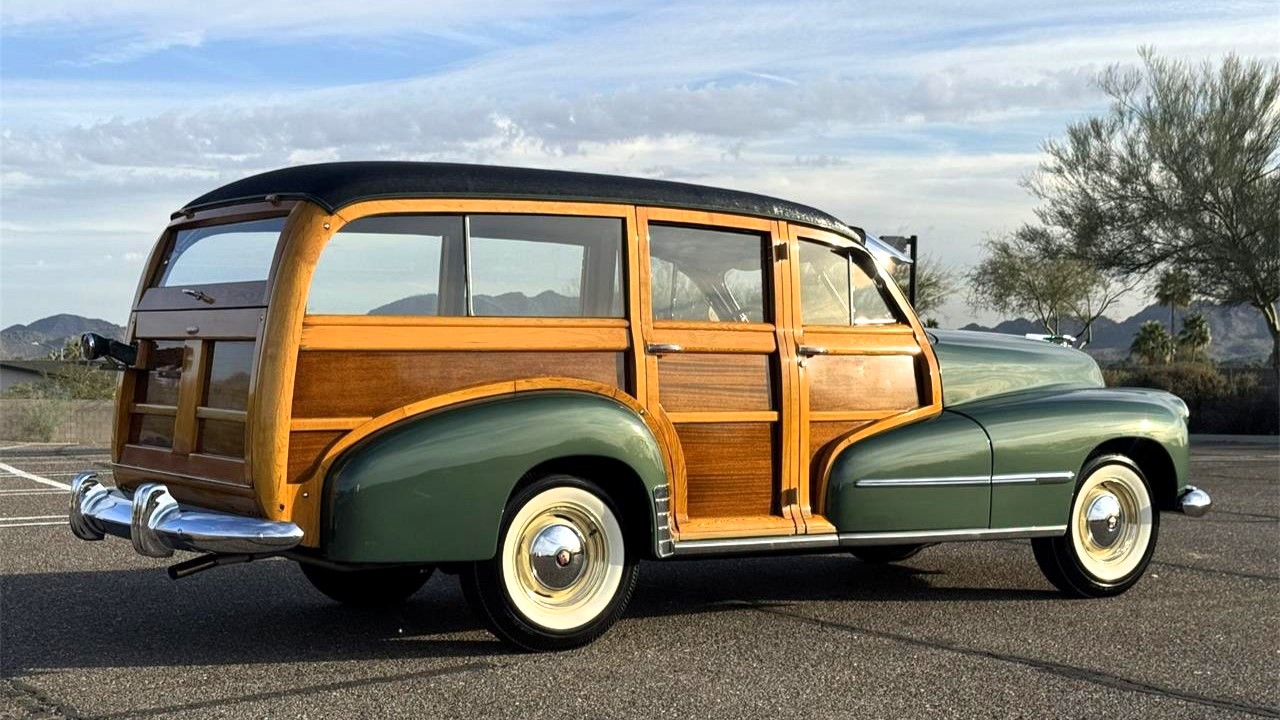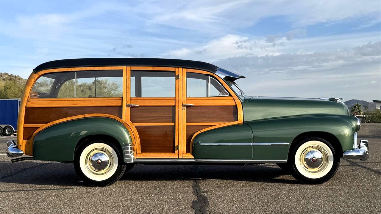 Oldsmobile’s 1948 Dynamic Series brochure shows that it offered seven body styles: five for the Series 60 and two for the Series 70. Opting for a 60 with the 100-horsepower inline-six made it into a Series 66, which is what the original buyer of this wagon did. Later on, someone decided to restore this hauler, changing the color from Nickel Gray to the current Ivy Green. That pairs beautifully with the dark green vinyl top, and the ash and mahogany woodwork.
