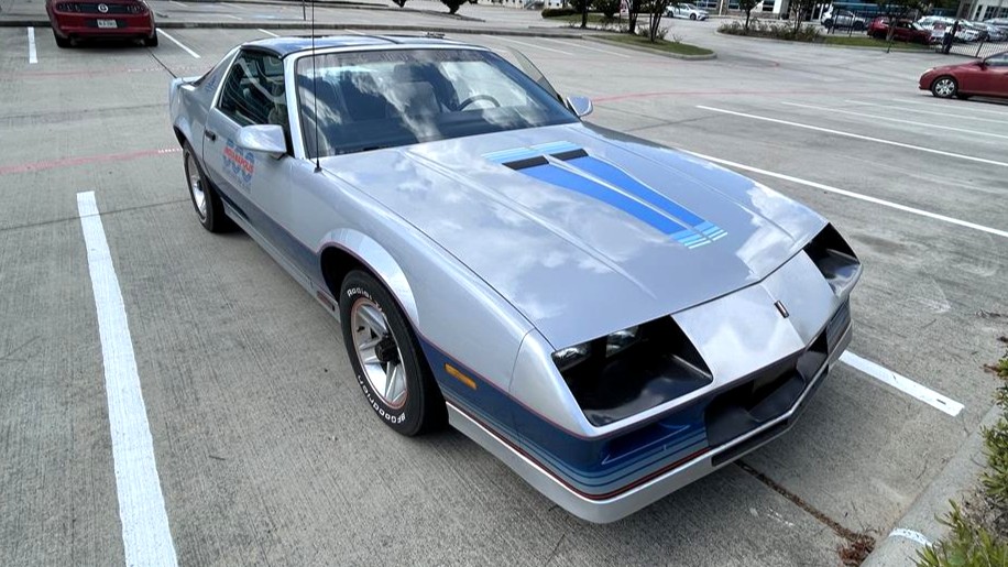 The Dover White hue was mandatory for Pace Cars, as were the Z/28-style stripes in Hugger Orange. There are also pinstripes on all four fenders as part of the Rally Sport package. And since it’s an RS, it has the semi-hidden headlights and special taillights. Other features include a white convertible top, Cowl Induction hood, chromed faux rear fender scoops, pace car lettering, chrome side-view mirrors, front and rear bumper guards, and a pair of chrome exhaust pipes. A set of 14-inch Rally wheels are wrapped in 215/70 BFGoodrich Radial T/A raised-white-letter radials.