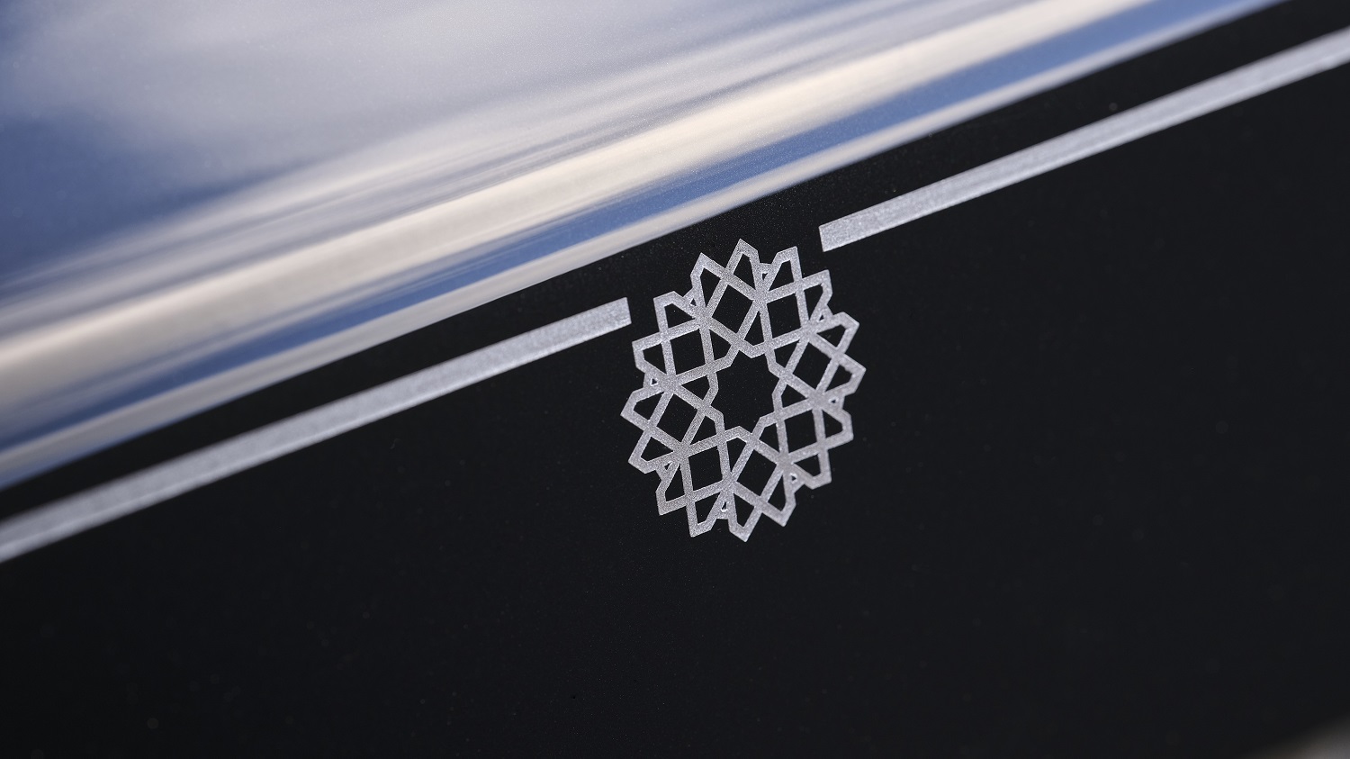 The Arabesque’s most prominent feature is its hood, not only for its giant mashrabiya design, but also for the time and technology that went into it. The artisans at Rolls-Royce’s Exterior Surface Centre spent five years developing the laser-engraving technique (which, oddly enough, was inspired by the Italian sgraffito technique) that carved those lines. Rolls started by laying down dark paint, then covered it with multiple layers of clearcoat. Once a lighter paint was applied over, the specialists used a laser to engrave the mashrabiya pattern. By carving only 145–190 microns deep, Rolls was able to reveal the darker paint below and give the hood a three-dimensional appearance. Variations in both the velocity and intensity of the laser beam resulted in a surface that seems to change slightly as light passes over it.