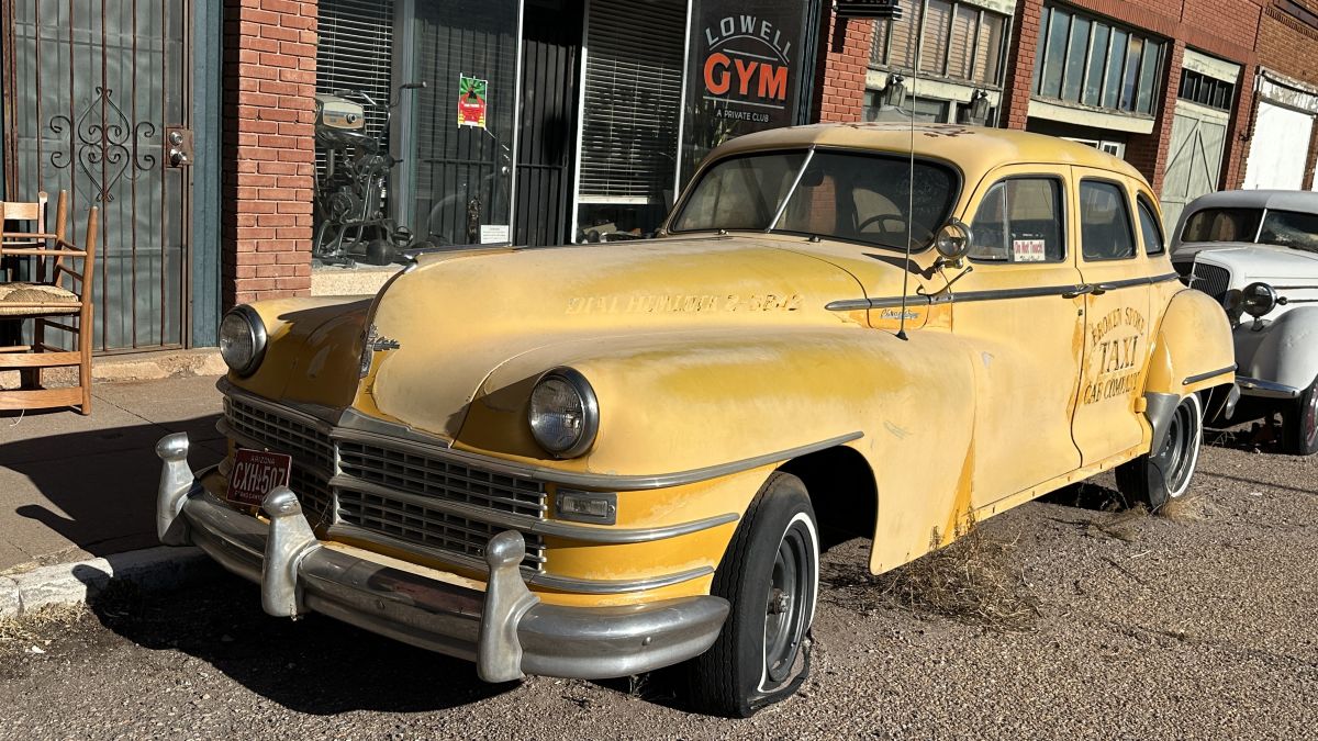 The New Yorker was a luxurious offering from Chrysler, complete with an Art Deco-inspired interior. Power came from a 323.5ci inline-eight mated to a semi-automatic Fluid Drive transmission. This streetside Chrysler was done up in taxi livery for the Broken Spoke Cab Company. It had some nice upgrades like an A-pillar-mounted spotlight.
