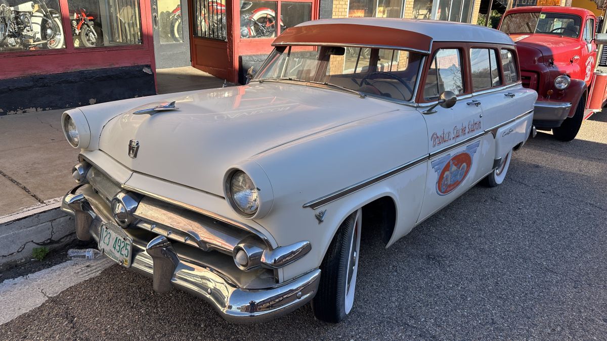 This four-door station wagon was a top-of-the-line ride for its time. Another Broken Spoke-themed car, this two-tone classic had V8 badges on the front fenders. That meant it was powered by an optional, new 239ci Y-block V8 that was rated at 130 horsepower.