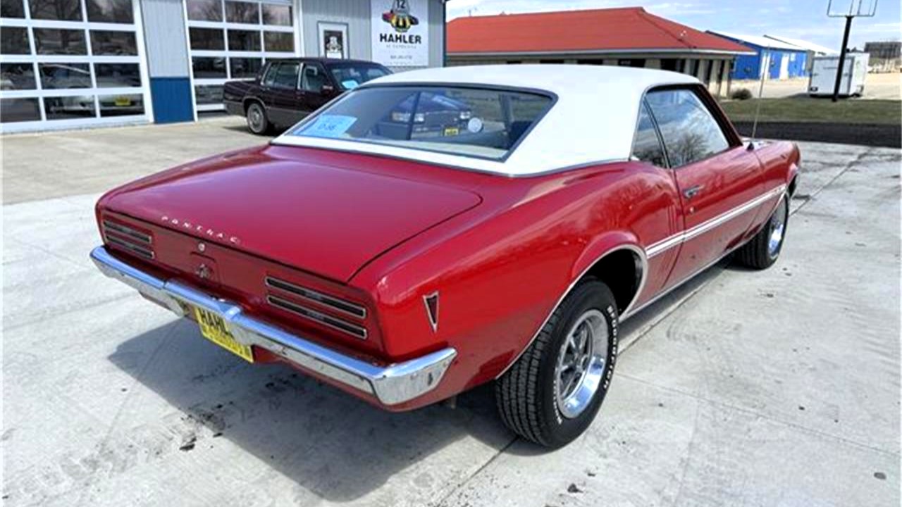 This Solar Red 1968 Pontiac Firebird HO coupe has the 320-horsepower 350 backed by a two-speed automatic. Little is given by the description, but I spy a white vinyl top, Rally II wheels, console, and AM/FM radio. There is no gauge package, but you can keep track of revs with the hood tach.