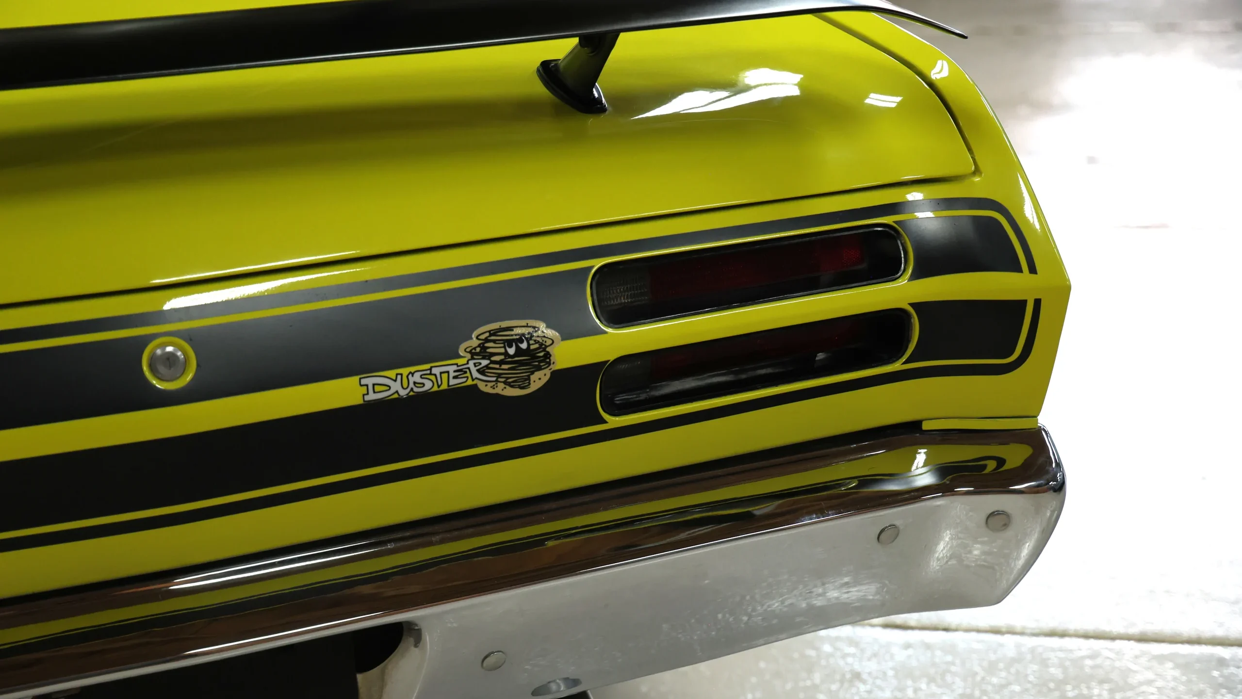 Overall, this Duster looks to be an excellent example, having been judged at the Monster Mopar Weekend in 2009, 2010, and 2011. Now finished in the great-looking color of Curious Yellow with black stripes and “340” decals, the car’s original (and quite boring) color was Tunisian Tan (code GT2). It also features a Ramcharger hood. The car rides on 15-inch chrome Cragar wheels clad with 225/60 BFGoodrich radial front and 275/30 Nitto Extreme Drag rear tires.