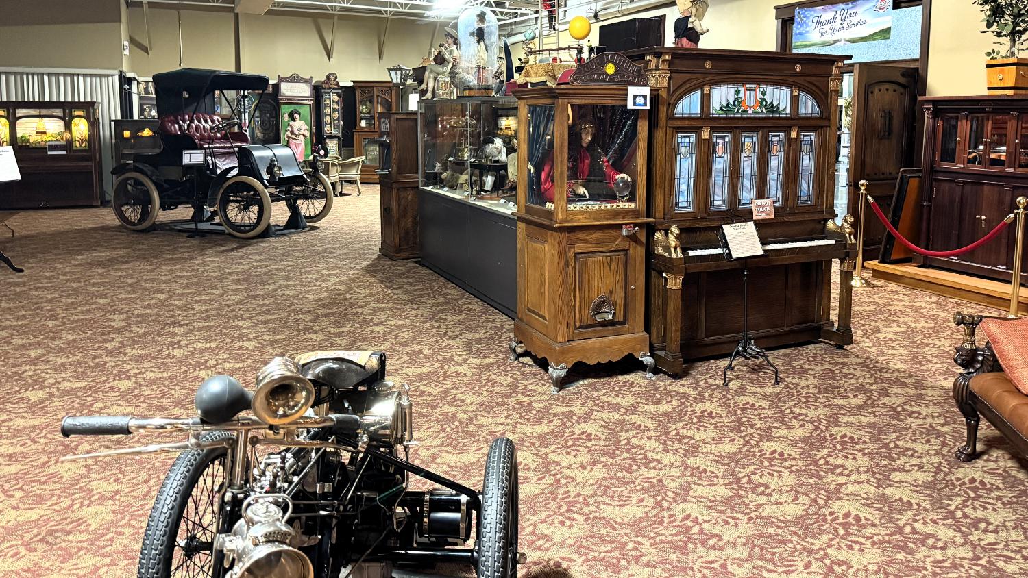 Honestly, I visit to view the cars, but I left wanting more time to explore the mechanical musical instruments. Think of automated music like a self-playing piano and you’d be on the right track, but this category of antiques is so much more vibrant, gee-whiz, and amazing than you’ve ever imagined. The above c.1915 Hupfeld Phonoliszt-Violino plays piano with violin accompaniment, though there are several violins within the console. It’s truly amazing to hear it make music, which you can do here. Pipe organs and other fangled instruments are also part of the collection.