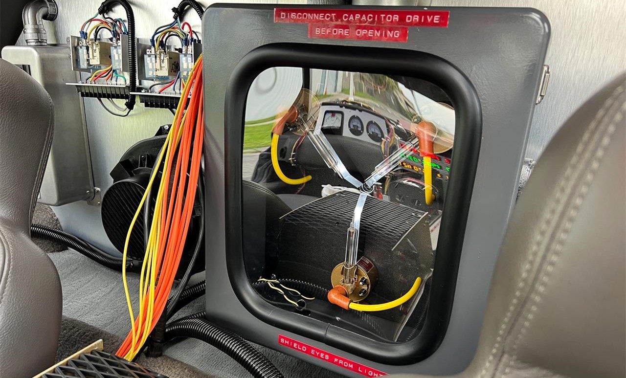 Just look at the details. According to the selling dealer, “Great lengths were spent achieving a correct representation of the movie down to the correct purple clamps that hold the external wires. Most builders would use black clamps—these are aviation purple clamps use just like in the movie car. It has all-metal aluminum construction for the rear vents, external mesh rails and other parts.”