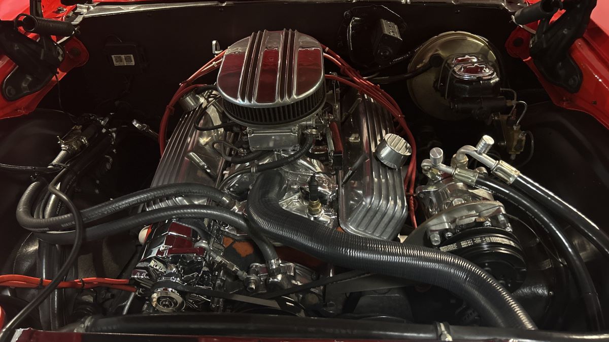 This Nova’s original 350 engine has been removed, but a replacement small-block has taken its place. This V8 is mated to a three-speed automatic transmission and a 10-bolt rear-end. A few performance upgrades have been integrated into the build, including a Holley 650cfm four-barrel carburetor, Champion aluminum radiator, a speed starter, and an AGM battery.