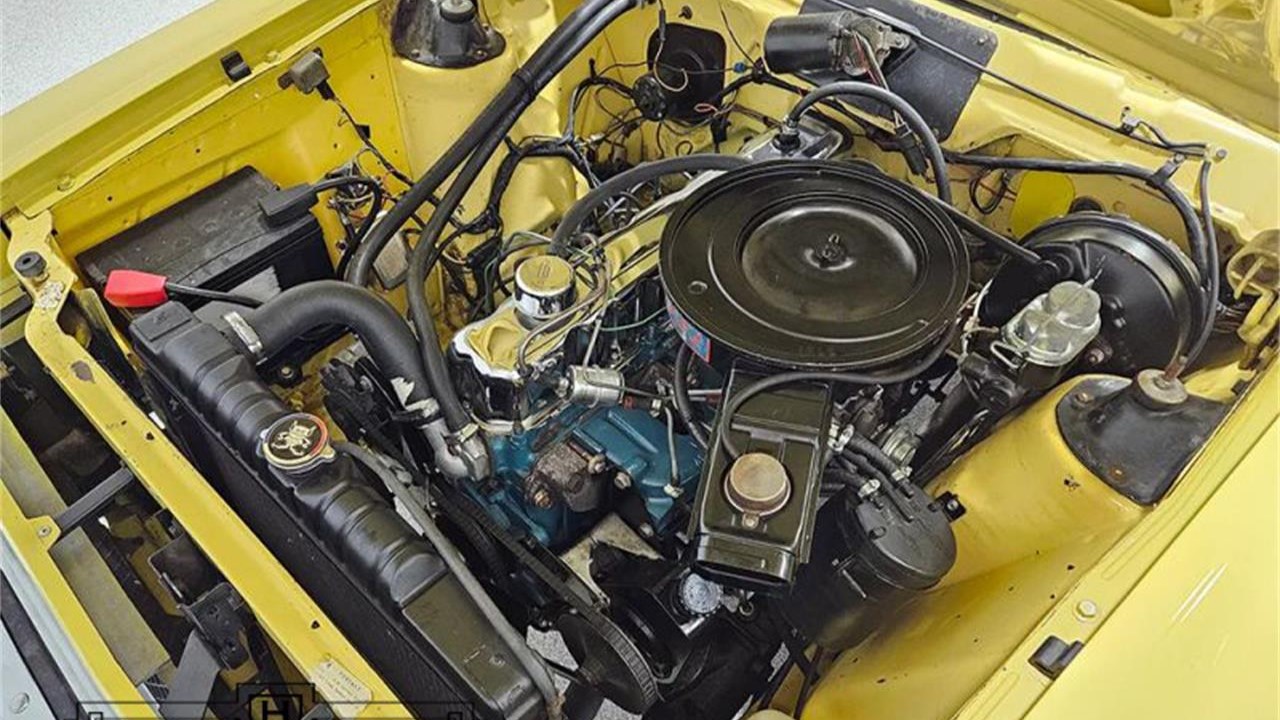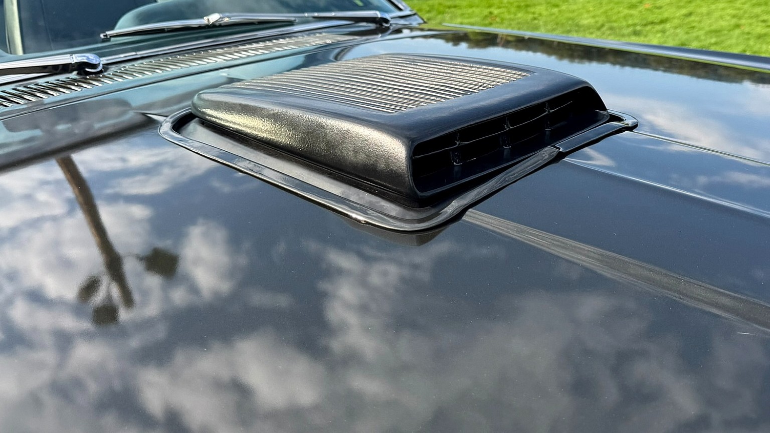 The TH350 three-speed automatic transmission has an aluminum pan and an external oil cooler. A custom driveshaft is linked to a 12-bolt rear end with a Positraction differential and 3.73:1 gearing.