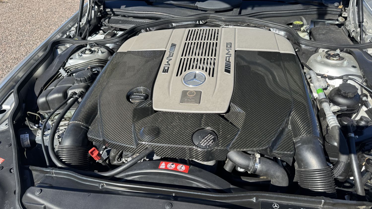 The powerplant is a twin-turbo 6.0-liter V12 putting out 604 horsepower. The engine features an aluminum block and heads, tuned port injection, and a carbon fiber engine cover. The supporting cast includes an AMG SpeedShift five-speed automatic.