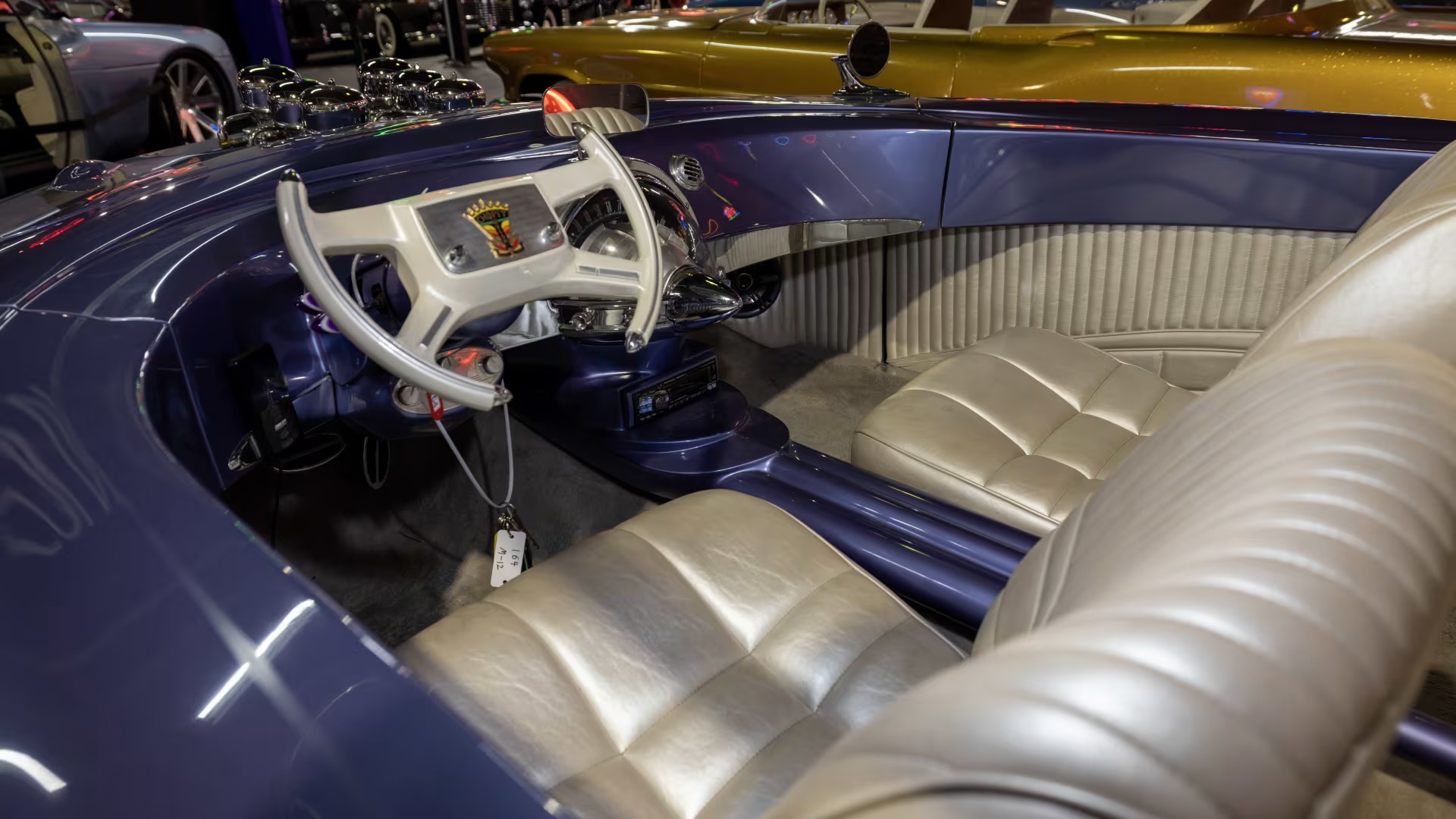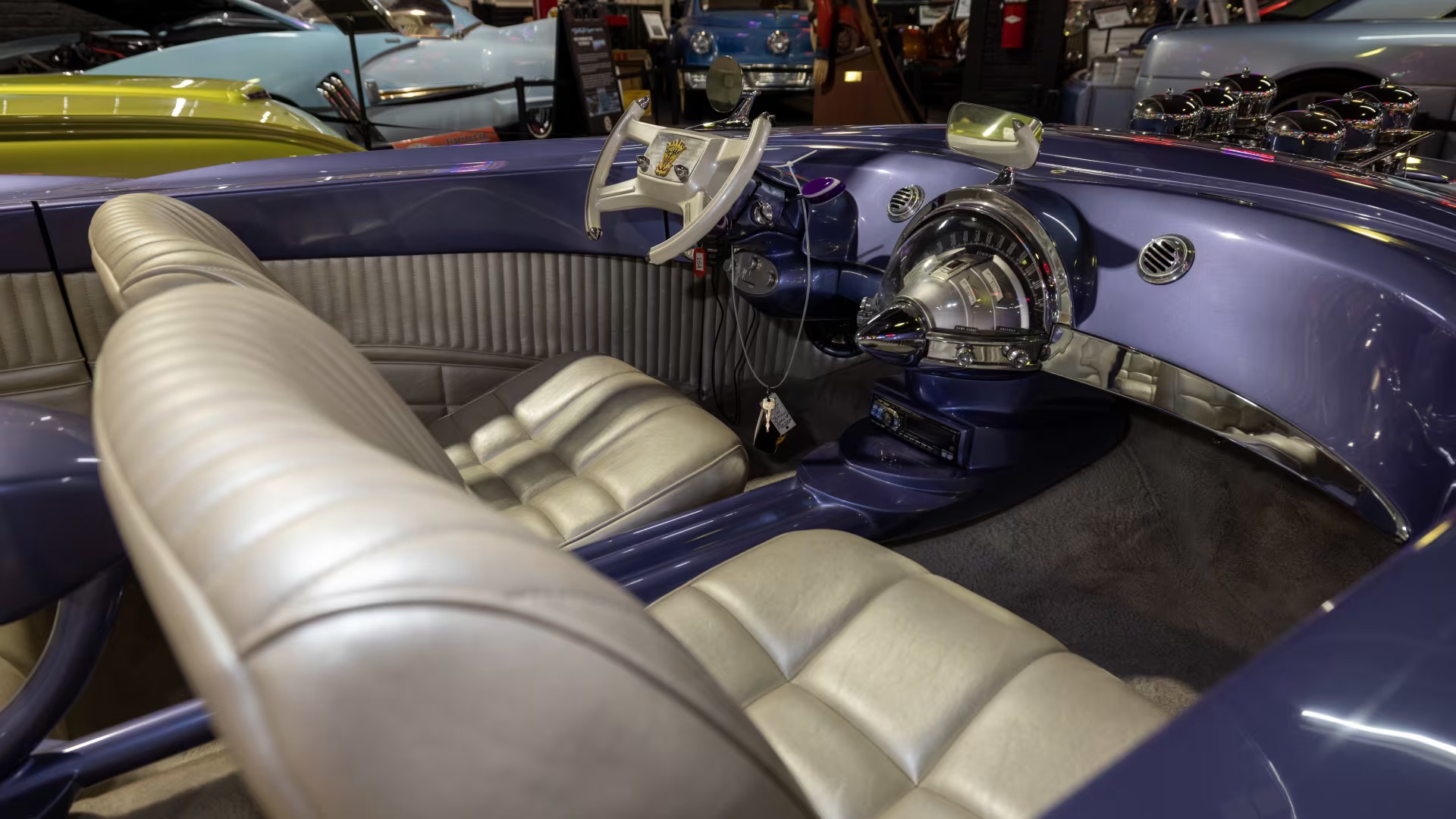 Upon its debut in 2005, the Beatnik immediately captured the attention of the custom car world and began racking up prestigious awards. It took home the Sweepstakes Award at Blackie Gejeian’s Fresno Autorama in 2005 and followed up with numerous accolades in 2006, including the George Barris Kustom d’Elegance Award and Outstanding Custom at the Grand National Roadster Show. Its success continued with a Grand Prize victory at Darryl Starbird’s National Rod and Custom Car Show and the American Cup at Carl Casper’s Custom Car Show. The 1955 Ford Beatnik Bubbletop is more than just a car; it is a legendary piece of custom automotive history that continues to mesmerize and inspire enthusiasts today.
