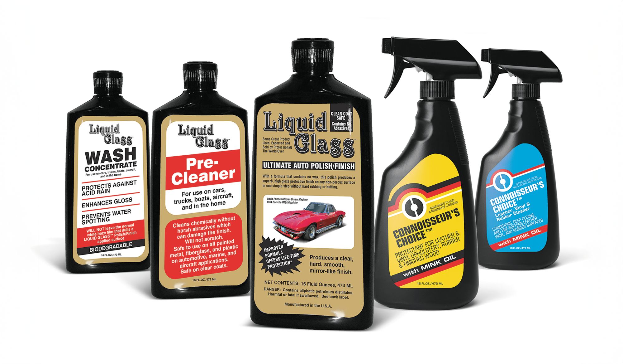 Coat your vehicle with a clear, hard, smooth and mirror-like shine with Liquid Glass Polish/Finish. It will not chip, peel, crack or yellow and is safe to use on any automotive paint finish. The easy-to-apply formula will help you seal and protect chrome, aluminum, stainless steel, brass, glass and more non-porous surfaces too. It’s also available as part of a set with other cleaning formulas including Pre-Cleaner, Wash Concentrate, Connoisseur’s Choice Leather, and Vinyl & Rubber Protectant, plus it comes with an application cloth and buffing towel (not shown). Ask about p/n LG900 and LG999 (kit) for more details.
