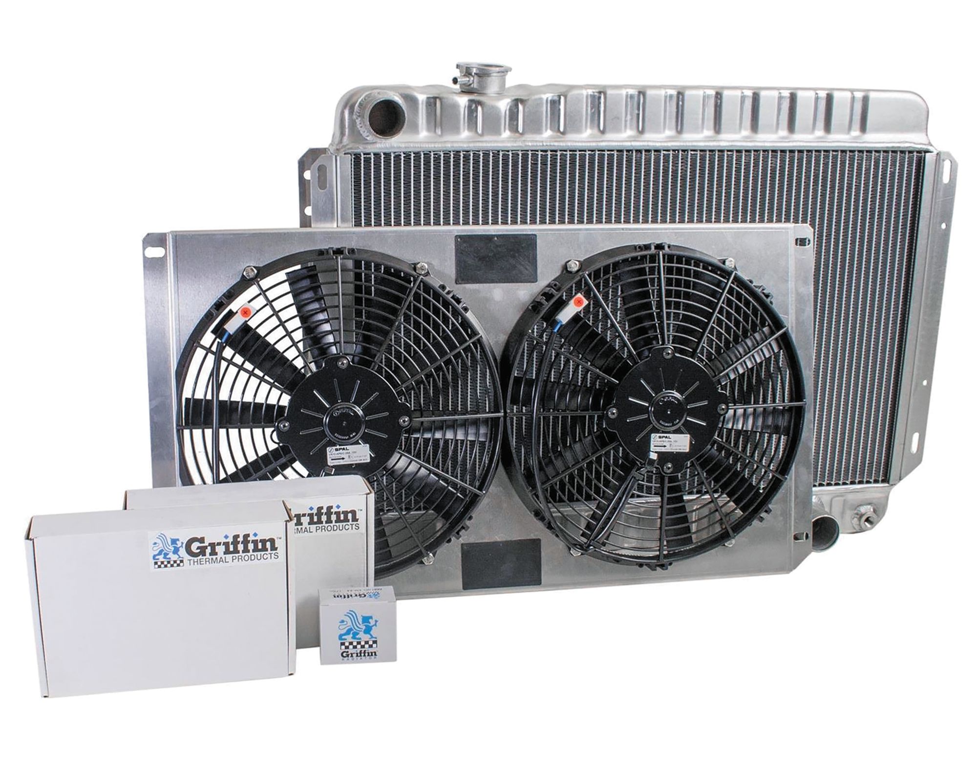 New Griffin Radiators are now available for 1964-’67 Chevrolet Chevelles. These are exact-fit radiator combo kits that are direct replacements for the factory units on cars without air conditioning. They have OEM-style stamped tanks, proper mounting points for factory equipment, and the proper mounting tabs and brackets for quick and easy installation. The kits also feature built-in transmission fluid coolers for Chevelles with automatic transmissions. The radiators are made from AA3003 aluminum and have two-row cores with 1.25-inch-wide tubes. They are said to provide 25 percent more cooling than radiators with 1-inch tubes. Also included in the kit are dual 12-inch electric fans, an aluminum shroud, a temperature sensor, a wiring harness, and a radiator cap. The packages are shipped with the fans and shroud mounted to the radiator. Inquire about p/n CU-70054 for more details.