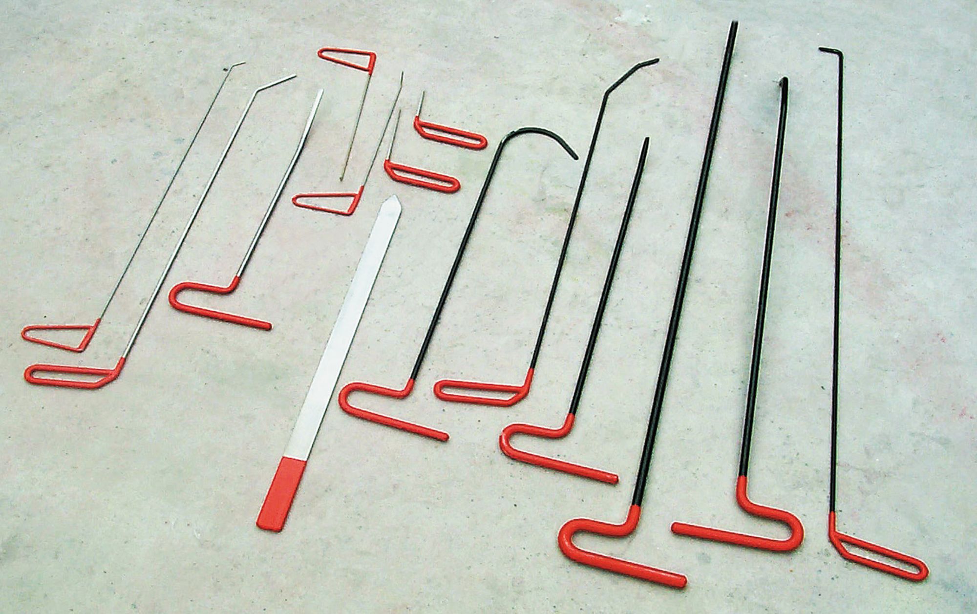 The assortment of tools in the set allows me to get to almost any dent in any car through openings that already exist in the car’s body. The ends of reinforcing doublers in the hood and trunk lid of your car usually allow access to almost any part of a panel if you look carefully. Also, there are often lightening holes in doublers that make access easy. Doors can usually be accessed through latch openings, but if not, holes can be drilled in the jamb area and then later plugged with rubber bungs.