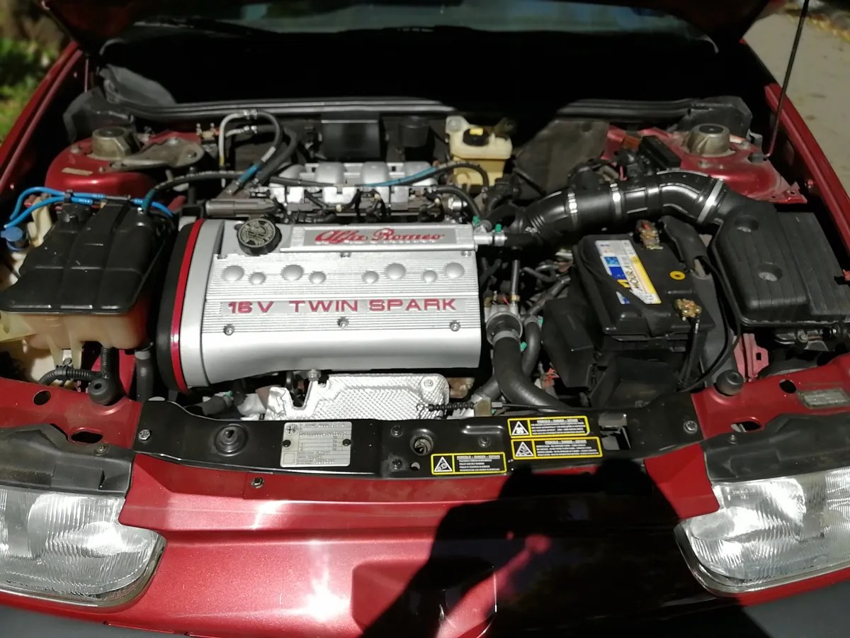 The Type 903A, as it was known in-house, was based on Fiat’s front-wheel-drive, unit-body Tipo Due platform, which was also the basis of the contemporary Fiat Tipo, Lancia Delta, and Alfa Romeo Spider and GTV models, among others. It could accommodate both Alfa’s horizontally-opposed four-cylinder engines, mounted longitudinally, and its inline-fours, mounted transversely. The most powerful of these engines was the 16-valve, DOHC, 1,970-cc Twin Spark inline-four, which was rated at 153 hp at 6,400 rpm and 138 lb-ft of torque at 3,500 rpm. This engine was borrowed from the Alfa Romeo 155, which was dominating European touring car championships.