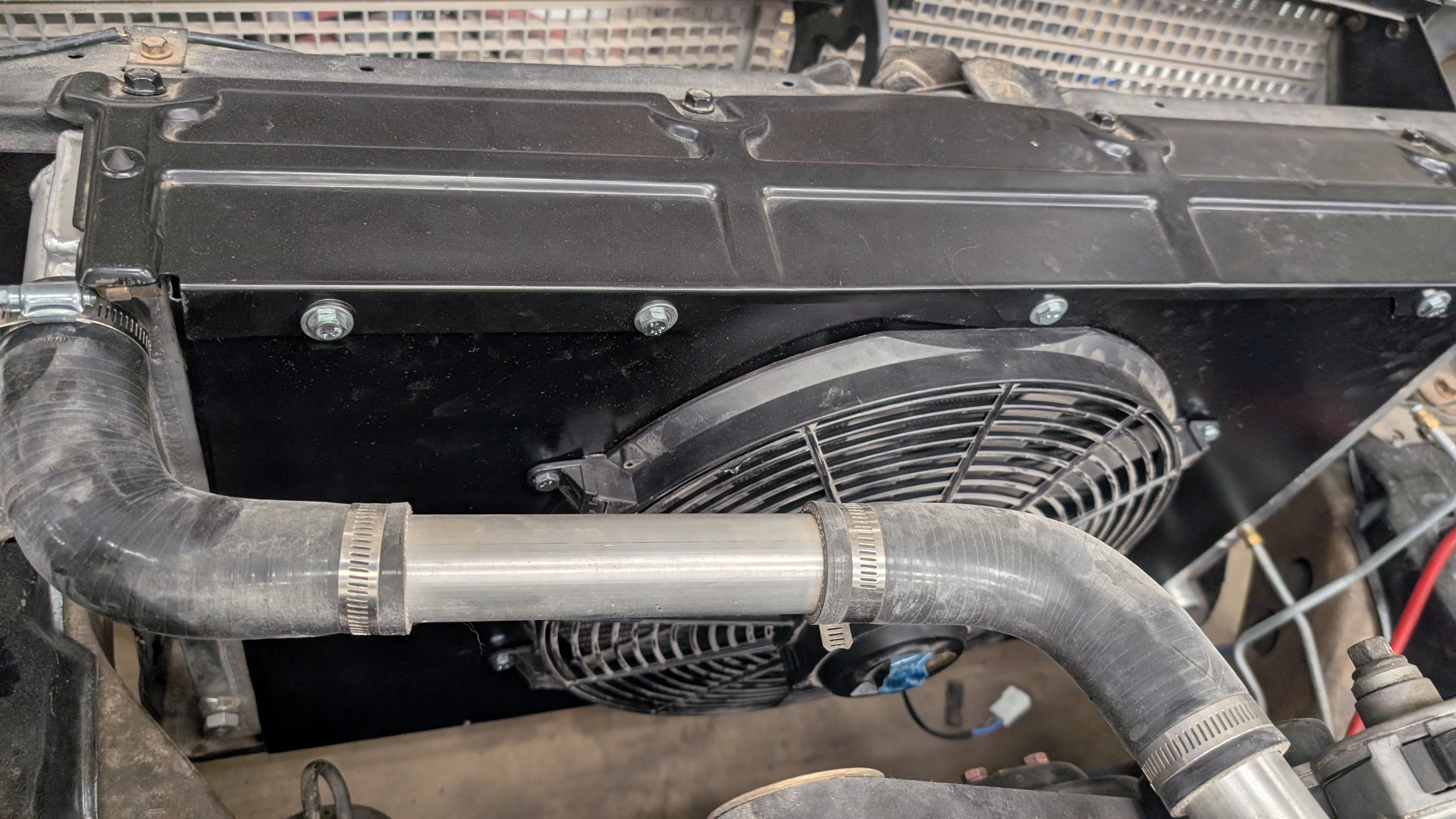 Moving beyond the radiator, the rest of the system is just as important. The biggest mistake many gearheads make with their cooling system is the fan. Mechanical fans are just fine, but they eat horsepower and are not controllable. Electric fans are the best option for any car that is not restrained by originality. Regardless of the fan style, all fans should be shrouded, especially mechanical fans. Without a shroud, a mechanical fan is just stirring up the air around it, there is little draw through the radiator at all. With a shroud, the fan generates a vacuum, pulling air into the radiator. This is only important below 40 mph, once the vehicle is moving 40 or faster, the natural airflow takes over.