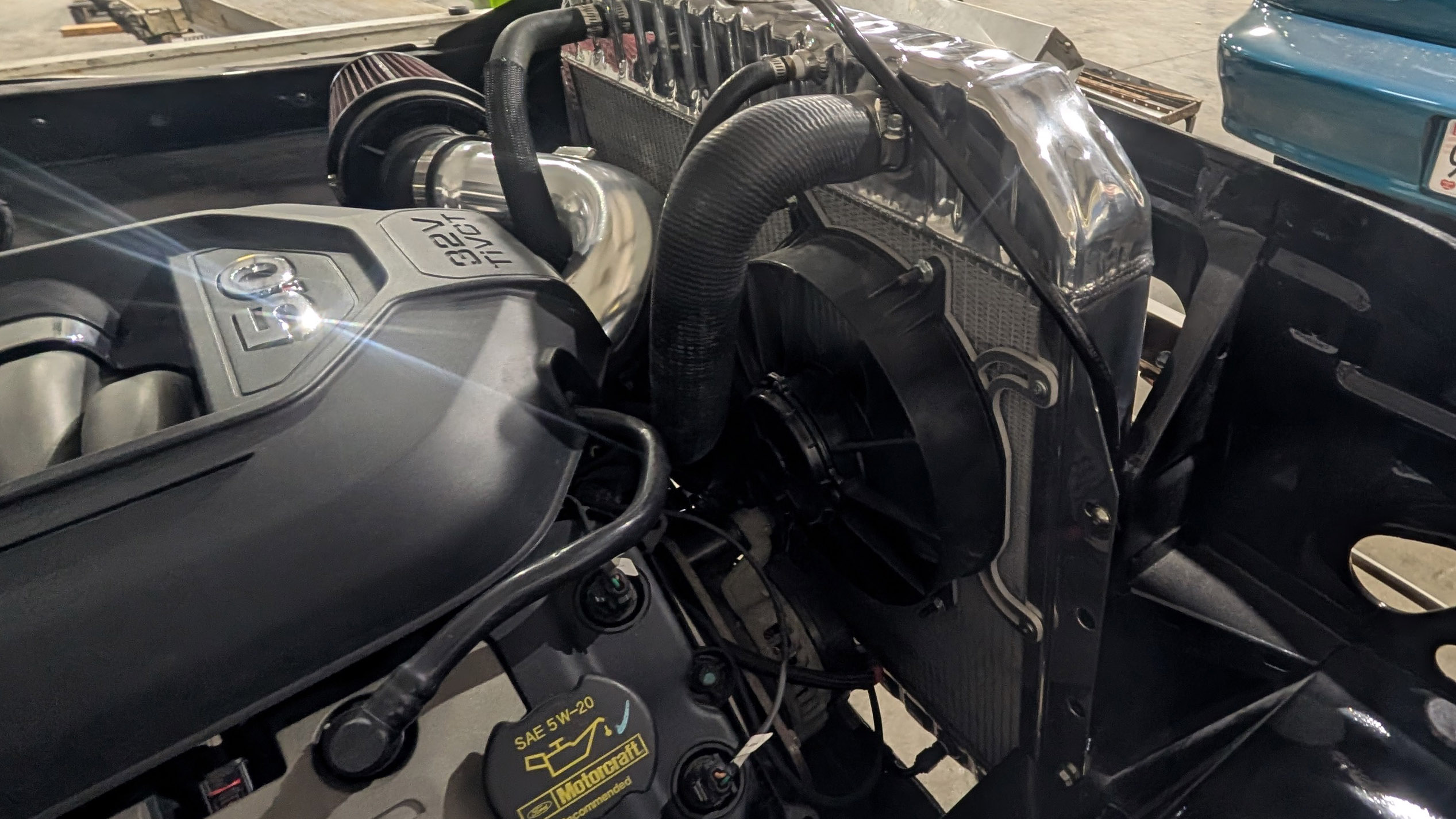 Electric fans are the best way to go, as they are temperature controlled, do not eat horsepower, and can be turned on under varying conditions such as when the AC is running. That last part is really nice for 2-speed or multiple fans. They should also be shrouded, as shown on this 1974 El Camino.This Ford F150 was built for U.S. Radiator’s owner Phil Cochran. They use a set of fan rings to support the fans instead of the dreaded zip ties. Sometimes there just isn’t enough room for a shroud.