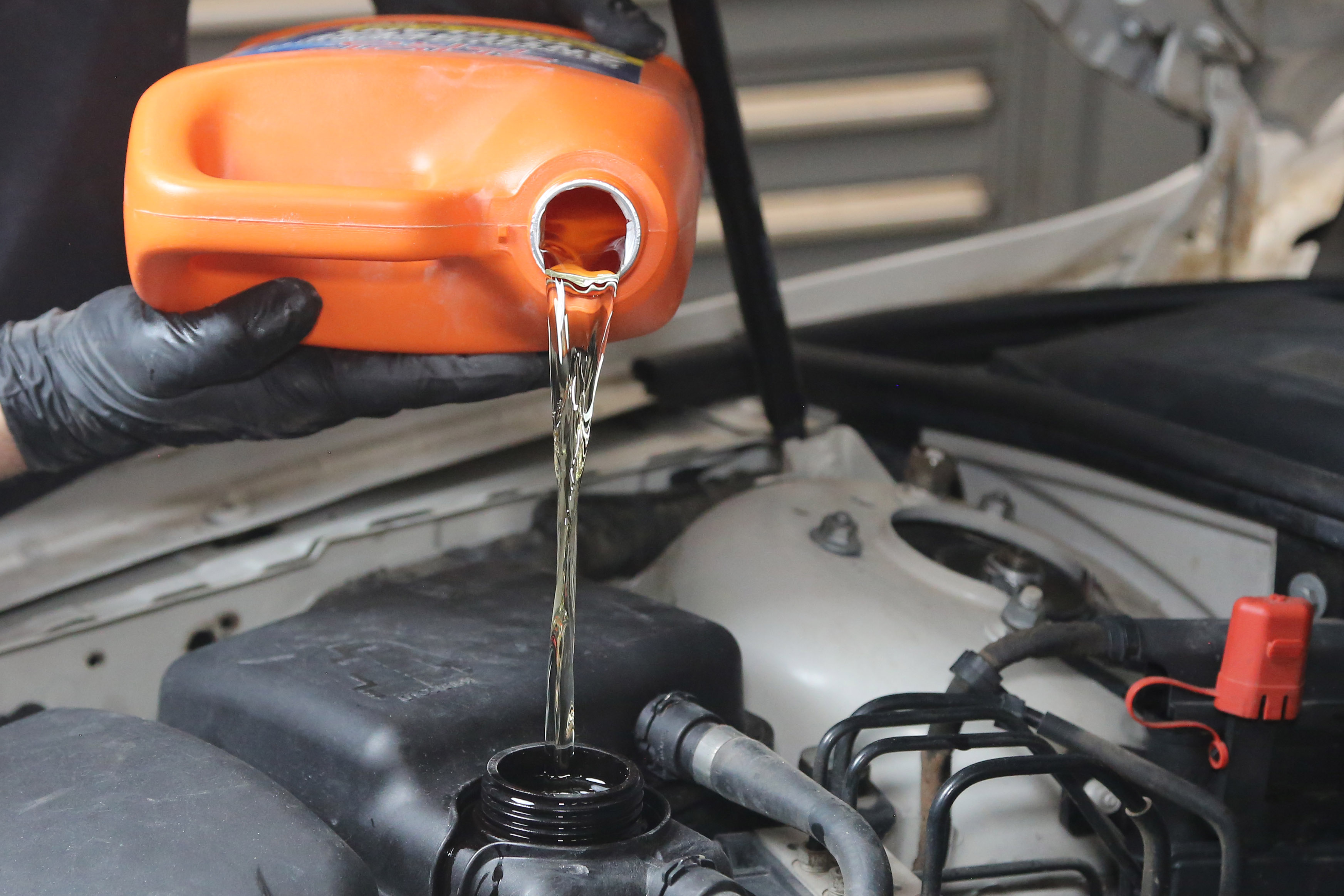 The coolant must match the system and any remaining coolant in the system. You have to flush multiple times if you are changing coolant types. Pro-Tip: Instead of pouring like a milk jug, turn the bottle on its side as shown. This is glug-free, no-mess way to pour any fluid.