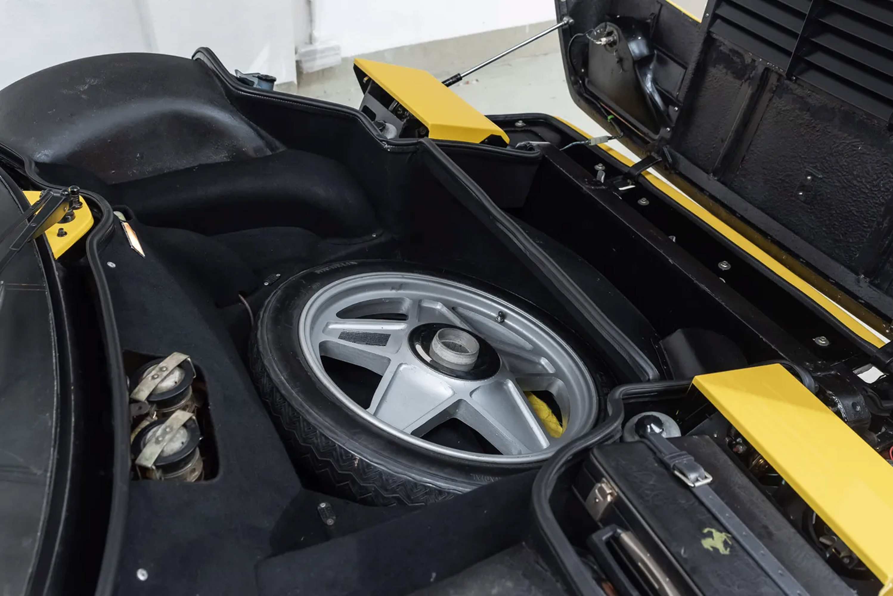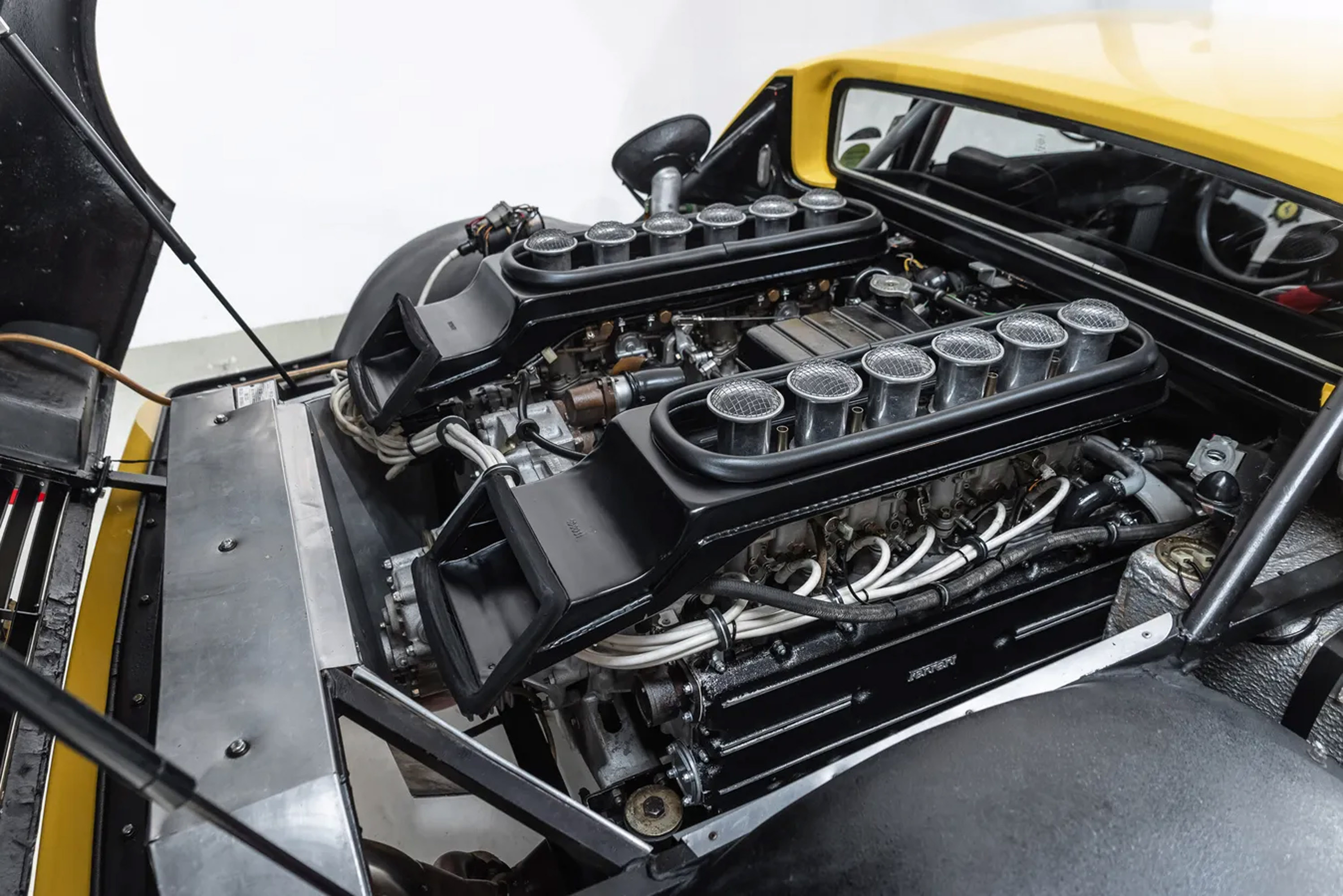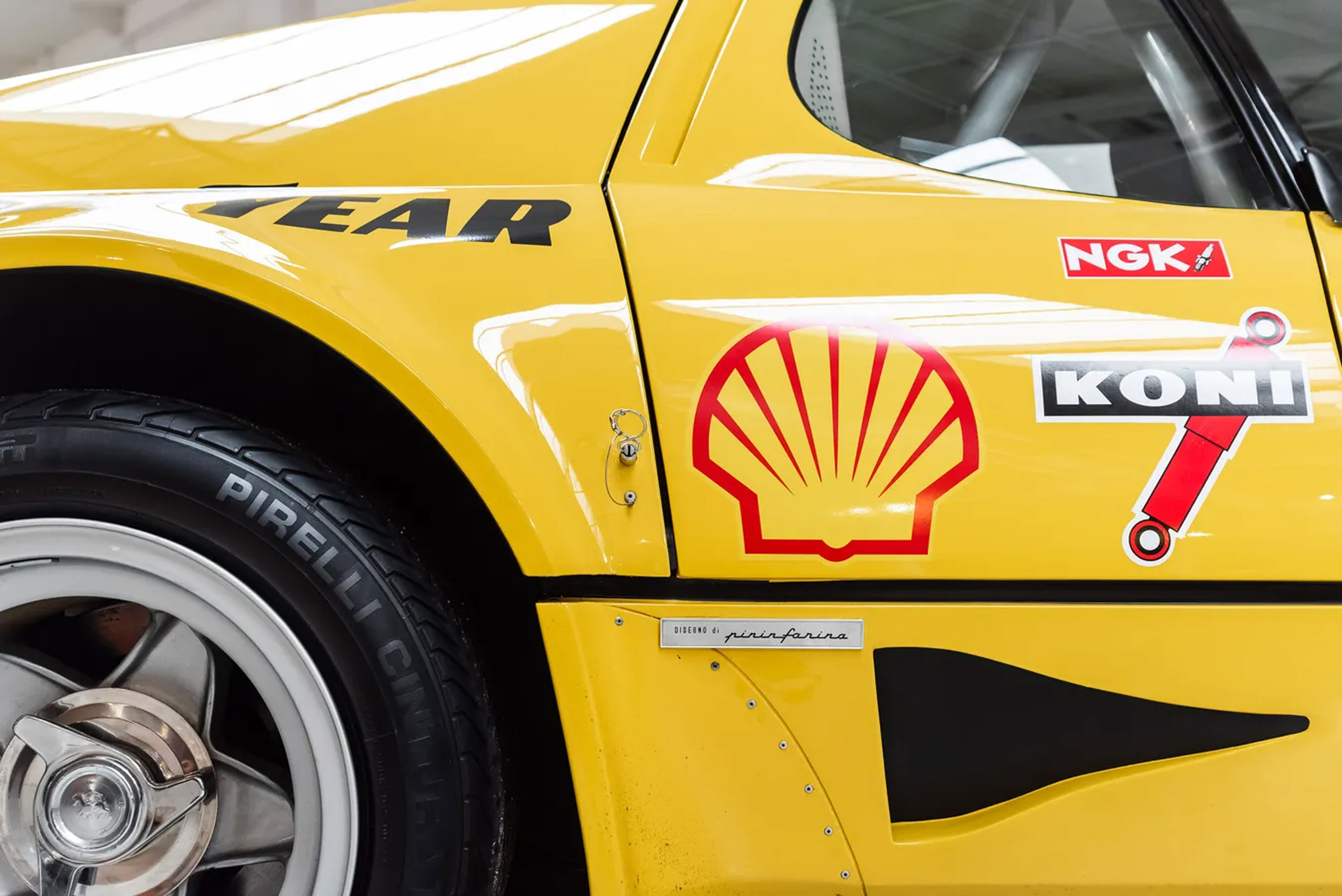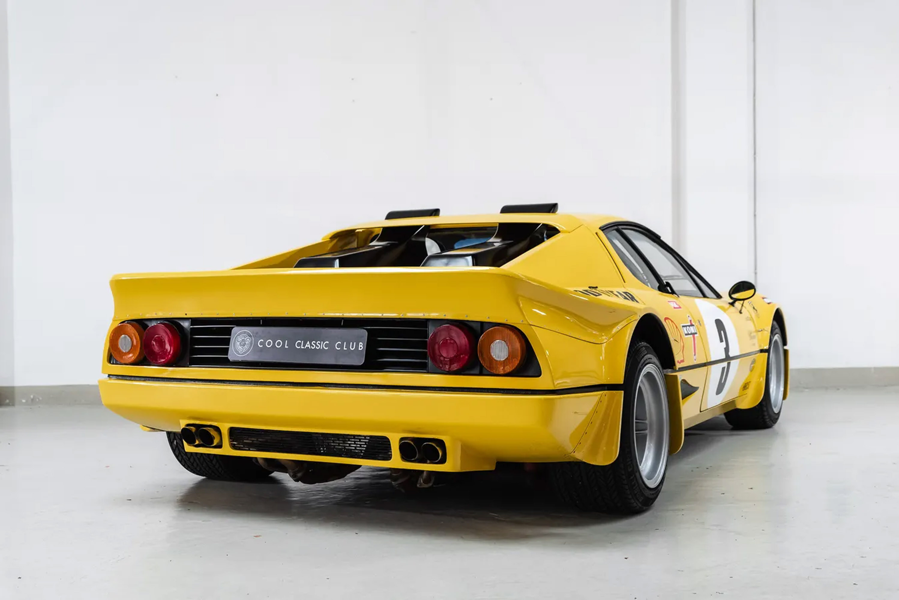 It is low to the earth, a wedge-shaped Italian from the 1970s in a blinding shade of yellow. It looks like a car from an electric racing track set. The number gumballs, riveted-on flares and the sponsor stickers tell the tale: this is a racing machine that was destined to do more than be parked outside of a fancy restaurant. It’s a 1977 Ferrari 512 Berlinetta Boxer that was modified by Carrozzeria AutoSport, and it looks ready to start cranking out laps at Monza.