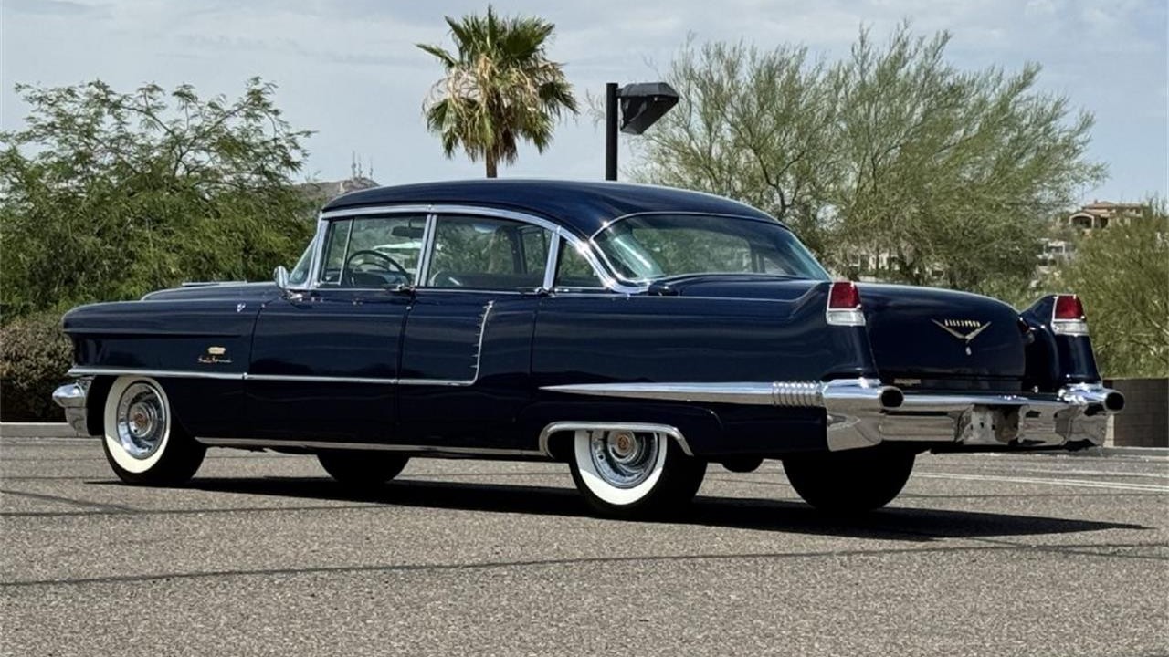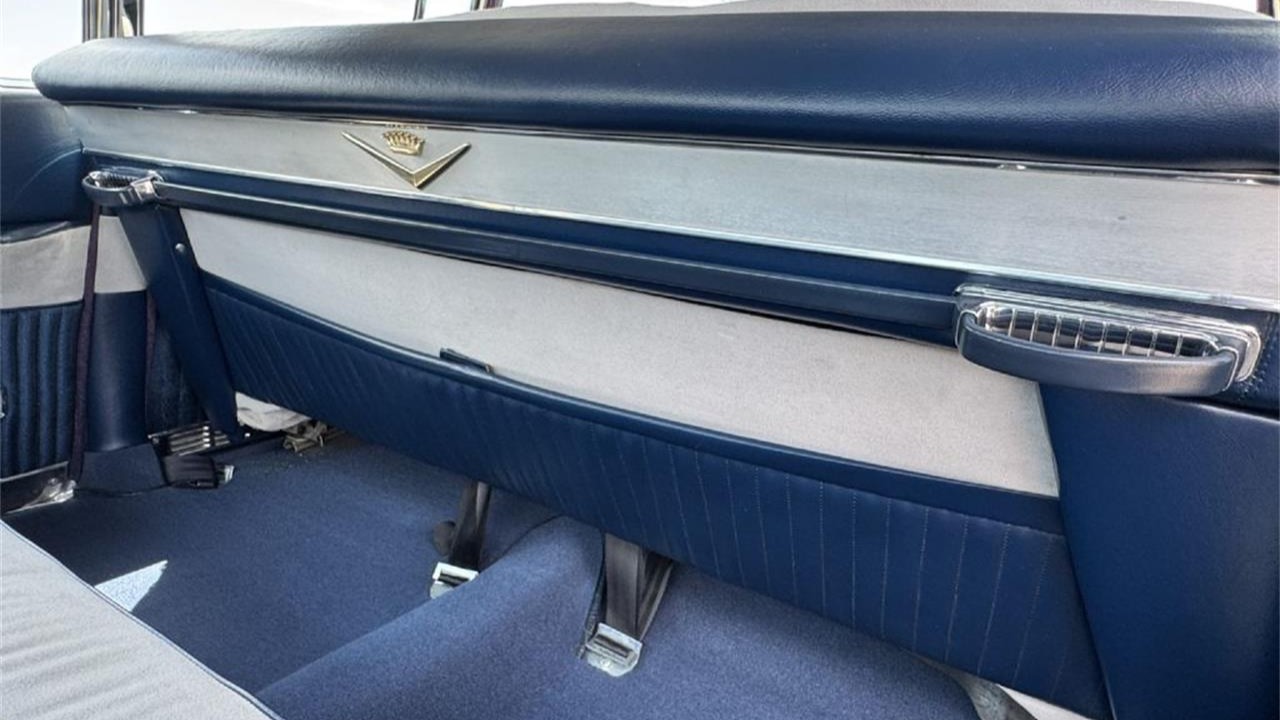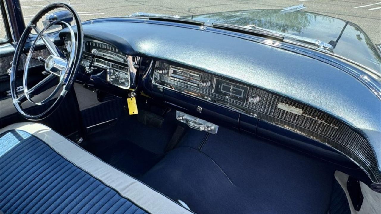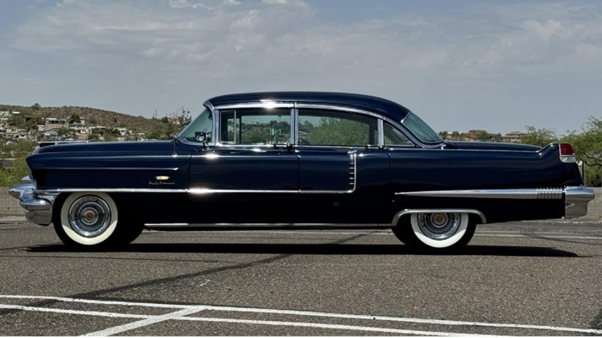 This Cobalt Blue 1956 Cadillac Fleetwood Sixty Special is said to be an older restoration with a claimed 21,000 miles. Note the chromed rear-fender spears that were exclusive to this model. The exterior is complemented by optional gold trim, including the anodized grille. “The chrome and stainless-steel trim are beautifully polished and largely show quality with normal imperfections from use,” says the seller. “The exterior is in overall very good condition and needs nothing to be enjoyed!” Inside, you’ll find dark blue brocade with gray broadcloth and blue piping. Options include air conditioning (both front and rear), the Autronic-Eye, a Pre-Selector radio, and power-adjustable front seats, among others.
