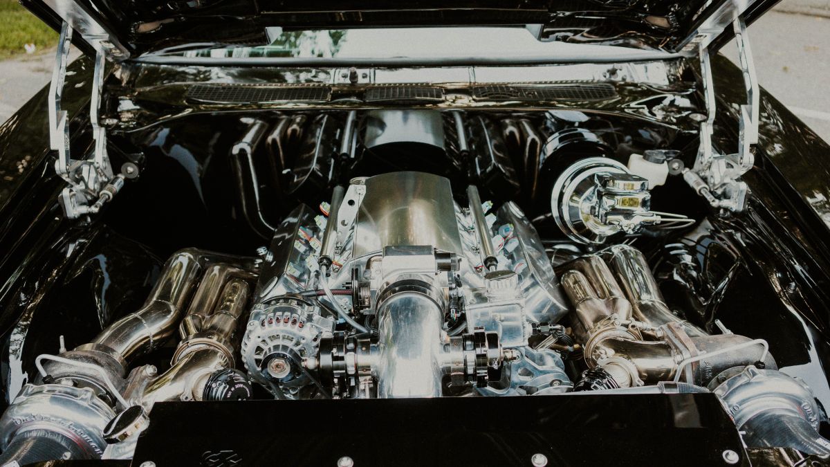 Pop the hood, and the scene shifts from classic nostalgia to pure modern muscle. Gone is the carbureted big-block you might expect; in its place sits an all-aluminum LS3 V8, its polished hardware gleaming against the blacked-out bay. Feeding the beast are twin 67mm ball-bearing turbochargers, while a custom 3-inch exhaust with electric cutouts handles the exit strategy. Power is channeled through a Viper-spec Tremec T56 6-speed manual transmission, putting three pedals at the driver’s feet and a firm shifter in hand to command the power. At the back, a stout Ford 9-inch rear end makes sure all that muscle hits the pavement.