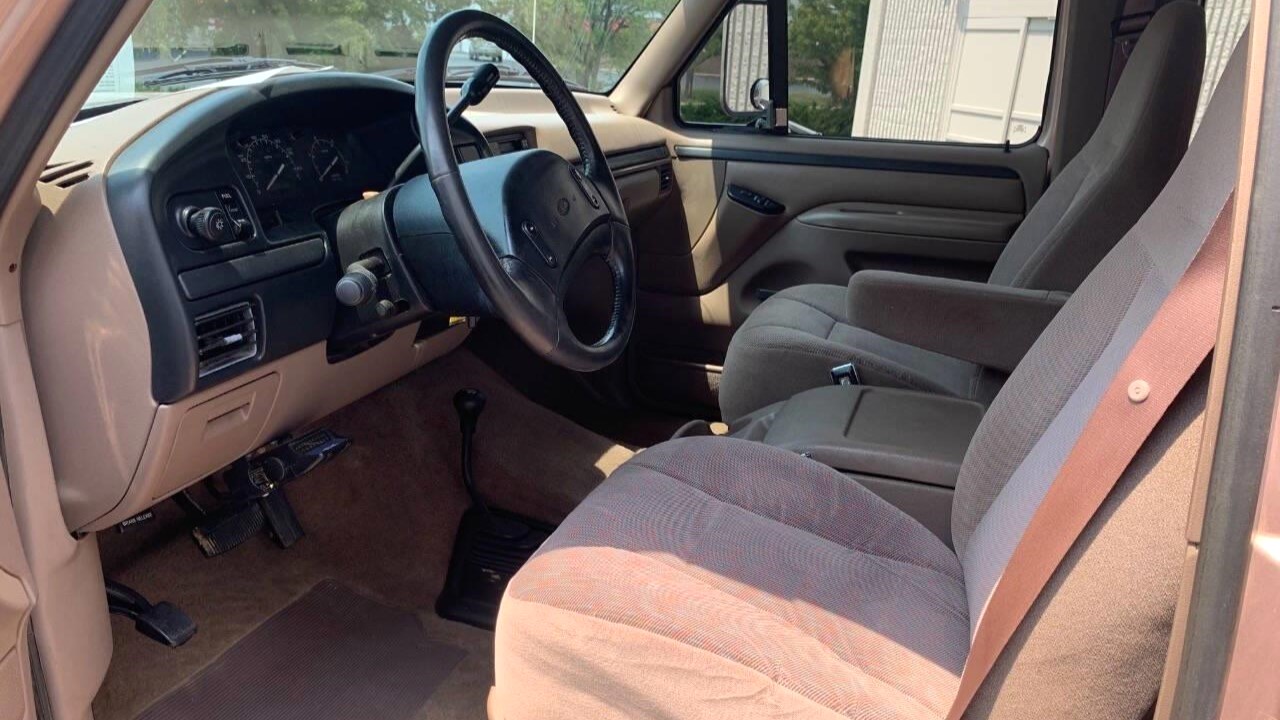 The color scheme of Light Saddle Metallic and Oxford White is another plus, bringing to mind a cloudy day in a western desert. A color-coordinated Lund windshield visor and matching running boards are as visually ’90s as the truck itself.