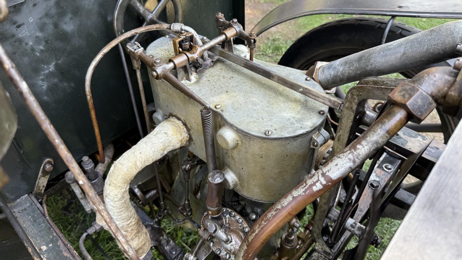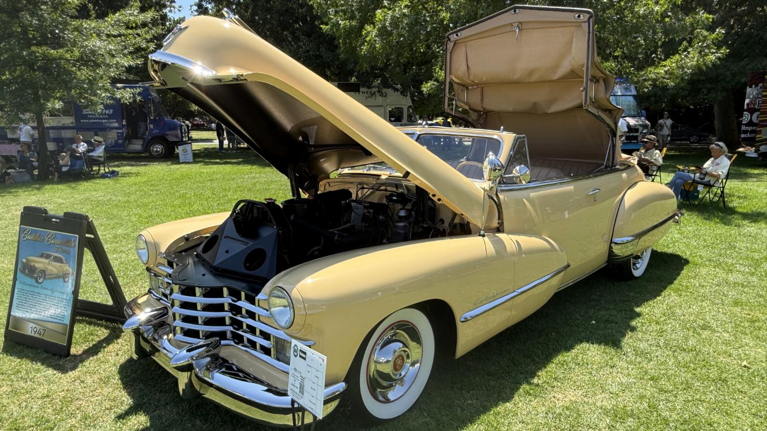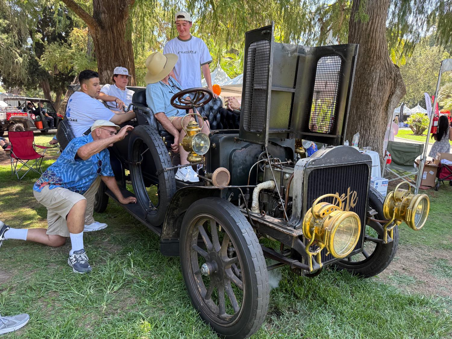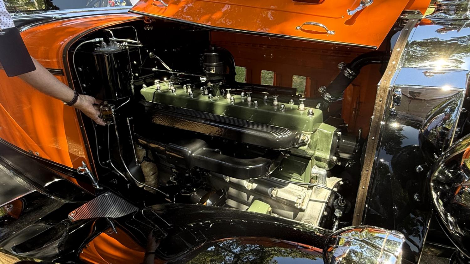 The word “understated” comes to mind when first looking at the car. After all, it’s a fairly nondescript tan-colored compact with 14-inch wheels, bench seats, and a no-frills overall theme. But pop the hood and you’re in for a surprise. The dressed-up, chromed engine compartment houses a 350ci small-block V8 that features a Holley four-barrel carburetor, Edelbrock intake manifold, aluminum heads, and aluminum radiator. The car’s B&M shifter is connected to a three-speed automatic transmission.