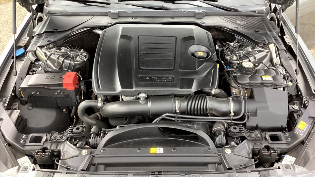 Under the car’s hood is a turbocharged 2.0-liter “Ingenium” DOHC inline-four that was rated by the manufacturer at 247 horsepower and 269 lb-ft of torque. An eight-speed automatic transmission and all-wheel drive system work in tandem to send power to all four corners. Grip comes from a set of 225/40 Michelin tires wrapped around 18-inch black-finished alloy wheels.