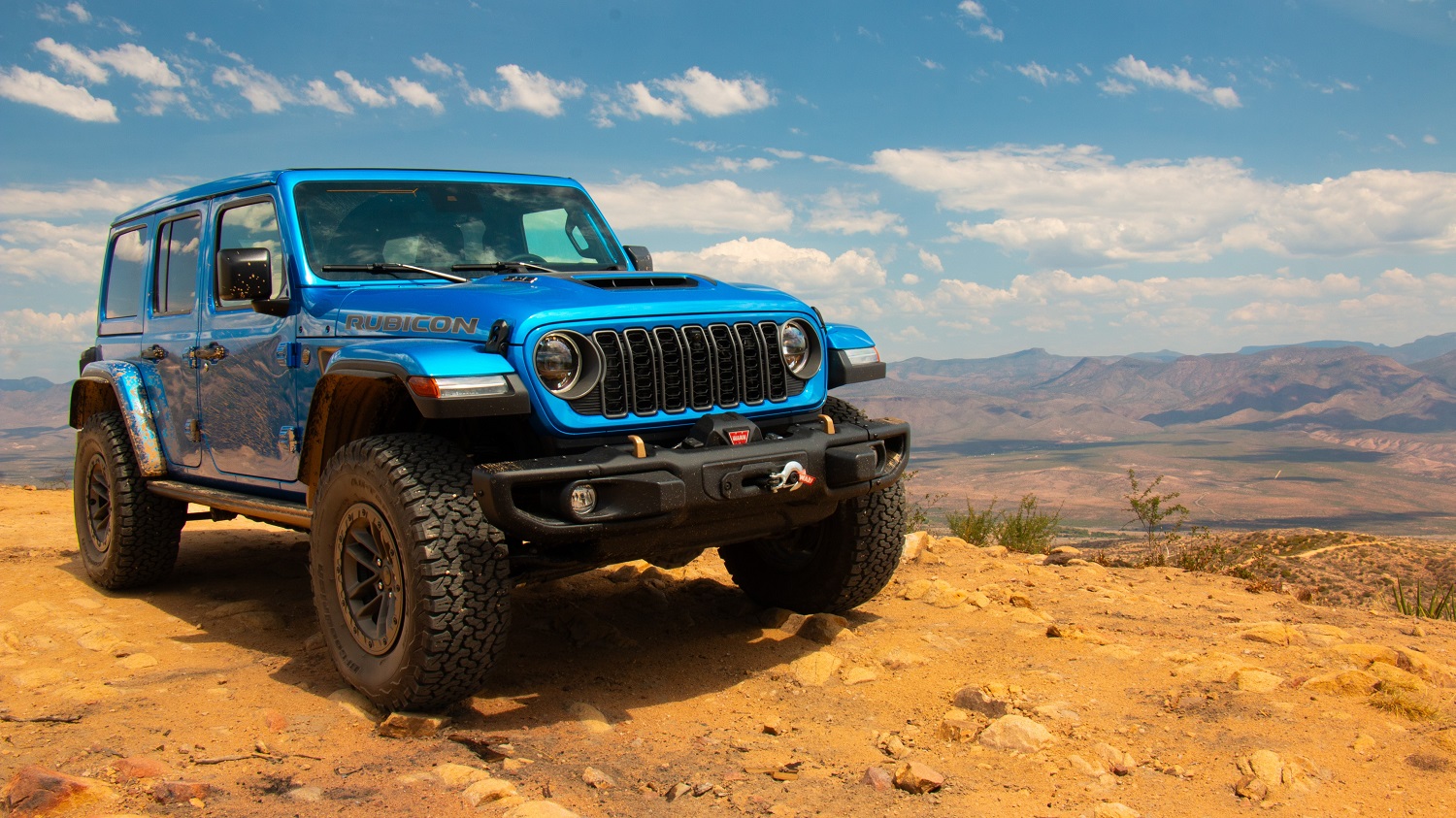 Since it debuted, the Wrangler Rubicon 392 has become progressively better equipped and more capable. It started off with upgraded frame rails, unique suspension geometry, heavy-duty brakes, FOX shocks, and 33-inch tires on 17-inch beadlock-capable wheels. For 2024, all Wranglers received a new seven-slot grille design, updated interior with standard 12.3-inch Uconnect 5 infotainment touchscreen, wireless Android Auto and Apple CarPlay, standard side curtain airbags in the first and second rows, and more. Rubicon models came equipped with a Dana 44 full-float rear axle designed for greater strength and easier worst-case-scenario repairs. The same year, Jeep upgraded the Rubicon 392 for its send-off by adding a Warn 8,000-pound winch, rock sliders, tool kit, a half inch to the existing two-inch lift, and a triple-hoop grille guard.