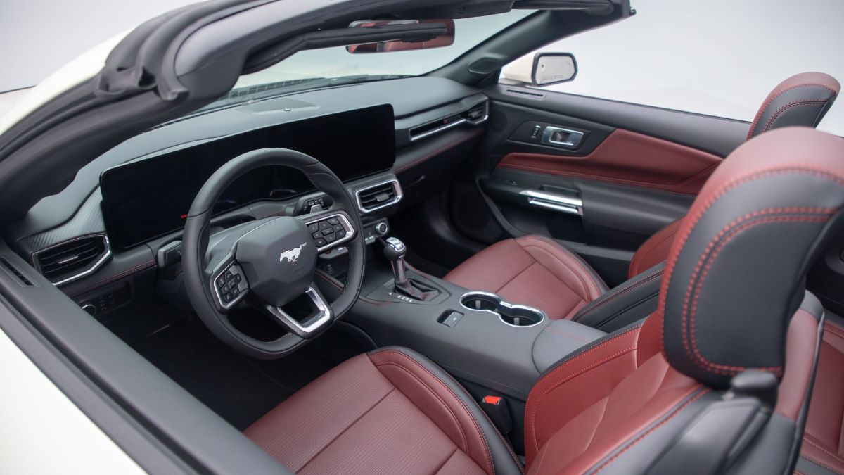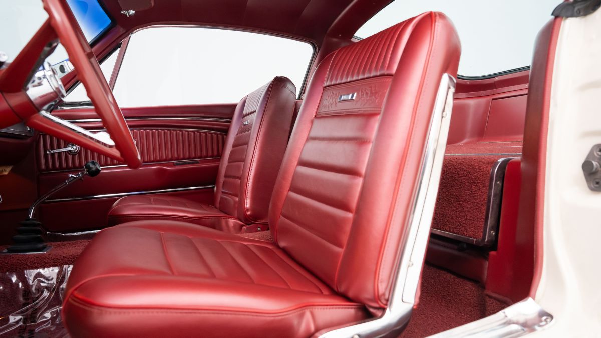 Step inside, and the red Pony interior transports you back to the golden era of Detroit iron.
