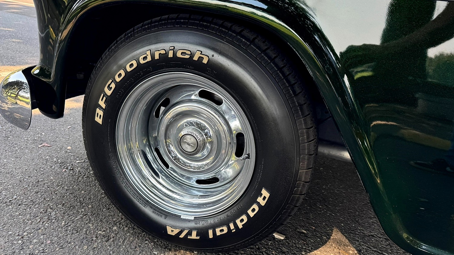This classic truck rides on a set of 15-inch Rally wheels wrapped in 235/70 BFGoodrich Radial T/A raised-white-letter radial tires.
