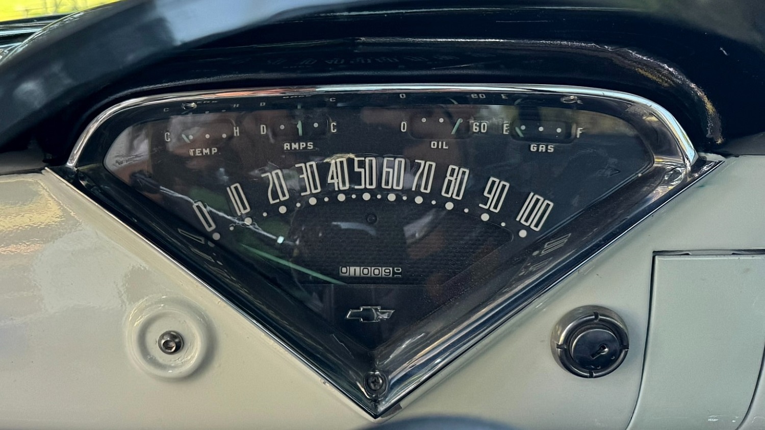 Instrumentation consists of a 100-mph speedometer and temperature, amperage, oil pressure, and fuel gauges. The odometer shows 1,009 miles, but this truck is mileage-exempt, according to its title.