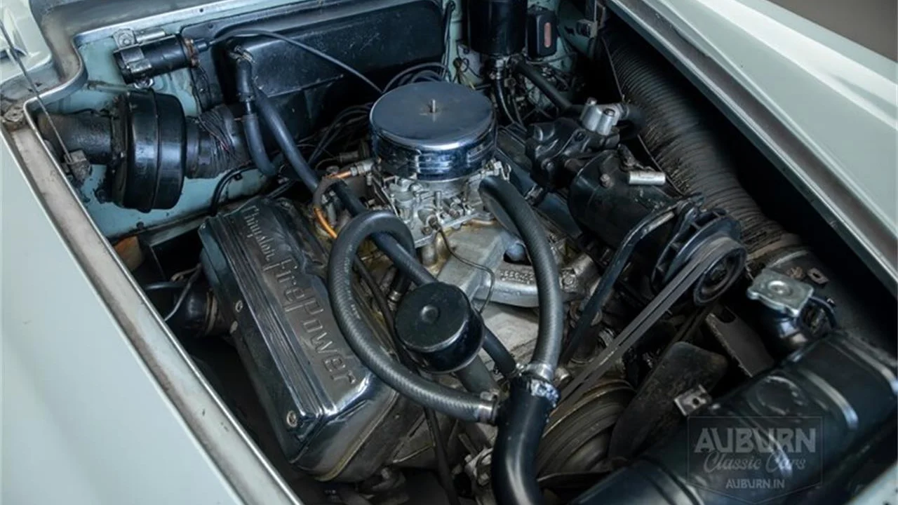 Under the hood is the correct Chrysler 331ci Hemi V8 engine, which is mated to a 1954 PowerFlite automatic transmission that shifts smoothly. I would personally inquire about the original transmission but, if it is indeed lost, I would not let this deter me from purchasing the car. This Special Coupe is currently equipped with a 1954 four-barrel carburetor, but the original carburetor accompanies the sale.